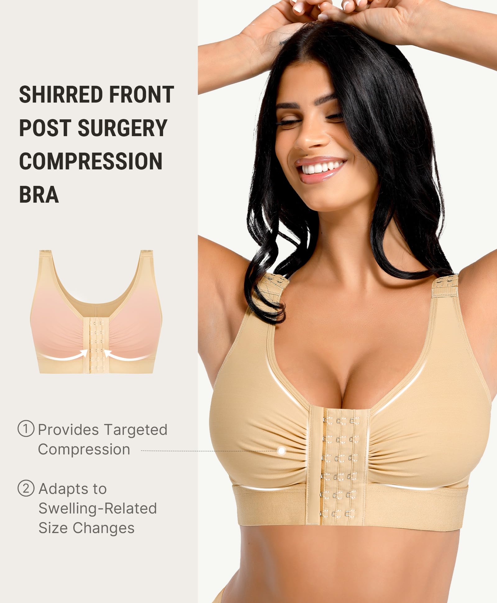 EFFECTIVE BREAST SUPPORT: The push-up bra posture shapewear tops for women effectively bring the breasts together to prevent sagging. This post-surgical liposuction compression mastectomy bra provides excellent full-coverage soft compression support for faster swelling recovery after breast lift, breast reduction, breast augmentation, and breast implant surgeries.