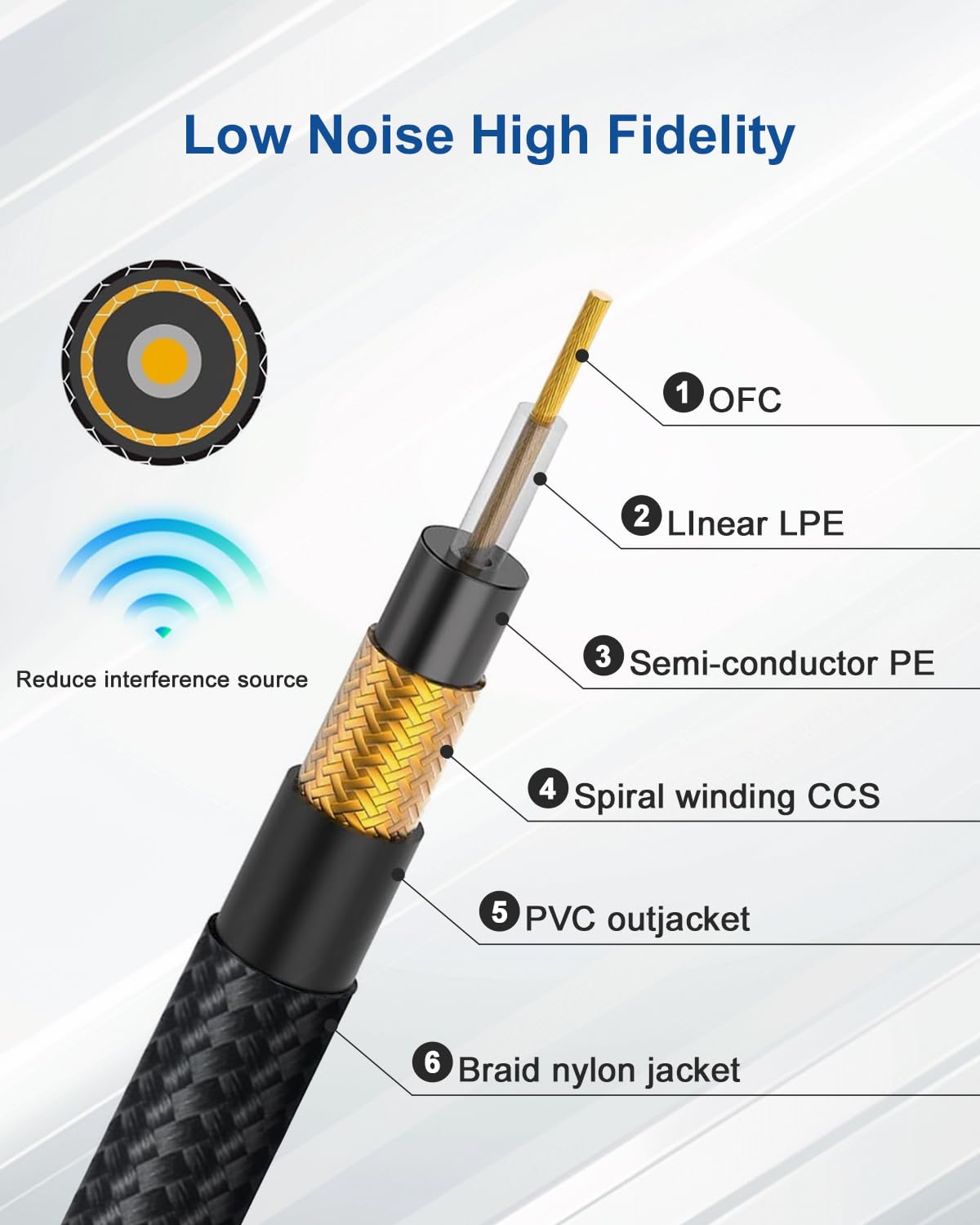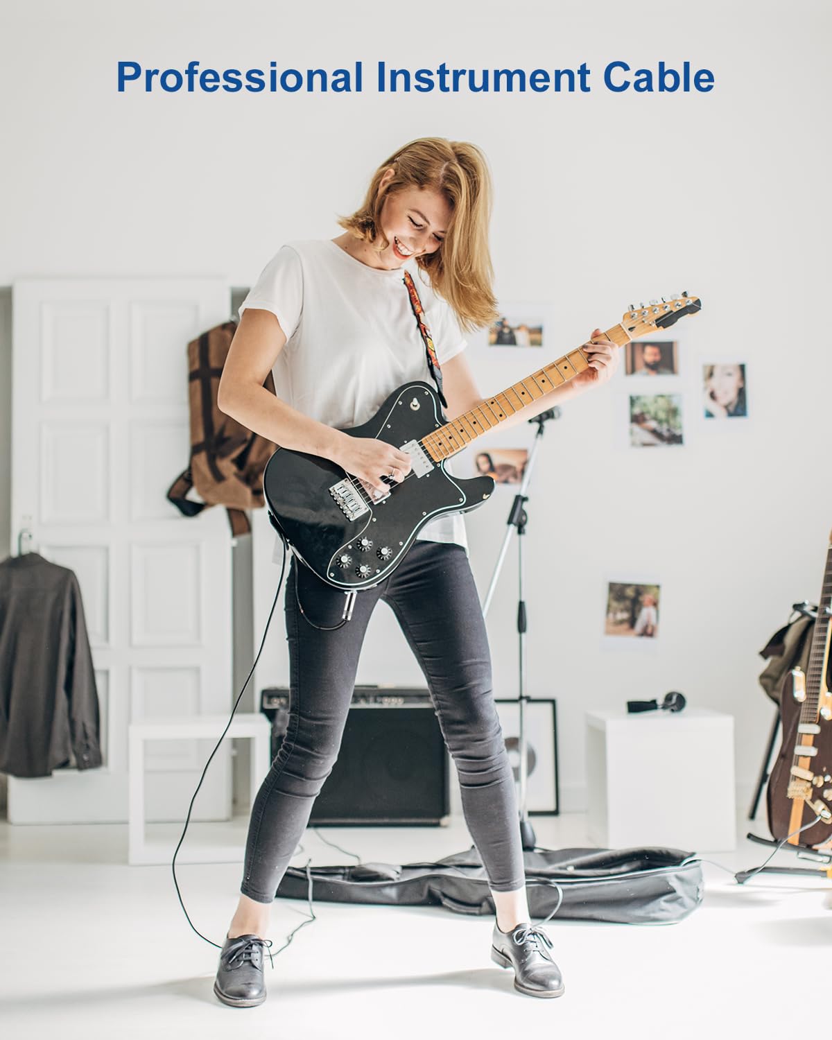 【High Fidelity】 The guitar cord PVC insulation material and the high-density stranded copper double shield provide noise rejection for quiet operation. The rotatable metal casing protects the soldered connections better