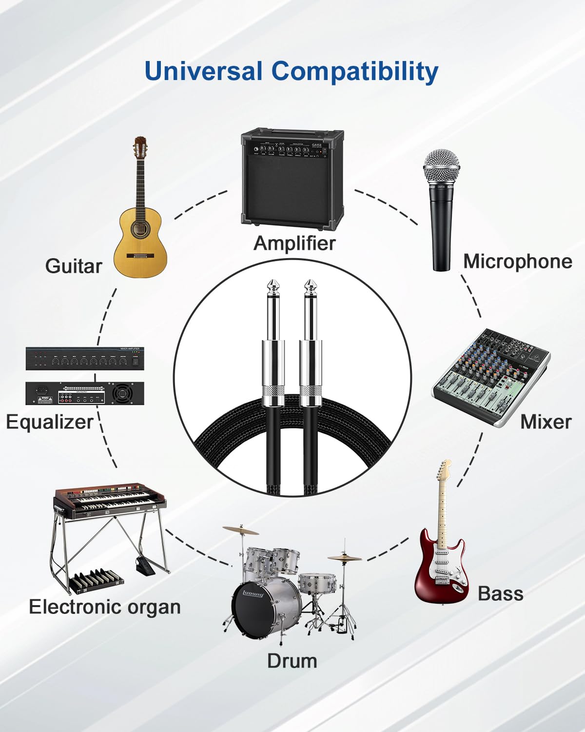 【Broad Compatibility Range】 Instrument cables that work with electric guitars, electric basses, mixers, power amplifiers, microphones, effectors, decoders, equalizers, and other electronic devices. extensively utilized in professional stage audio, karaoke speakers, smart home installations, etc