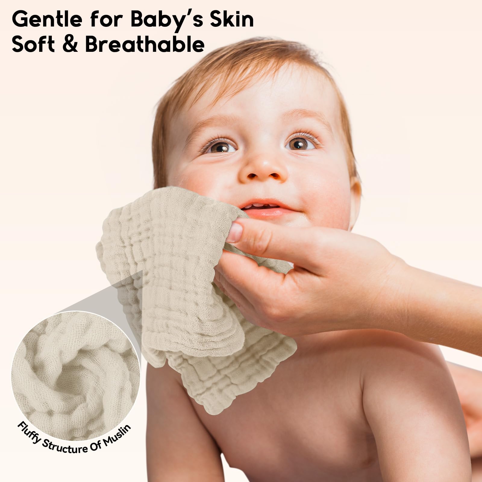 Verstile Baby Essentials: Designed with a gender-neutral color, our muslin washcloths will be a thoughtful present for any occasion like baby shower, baby registry, birthday, or you can use it as baby face towels, hand towels, baby wipes, burp cloths, sweat cloths, even makeup removers. A must-have for teething baby and mess no more.