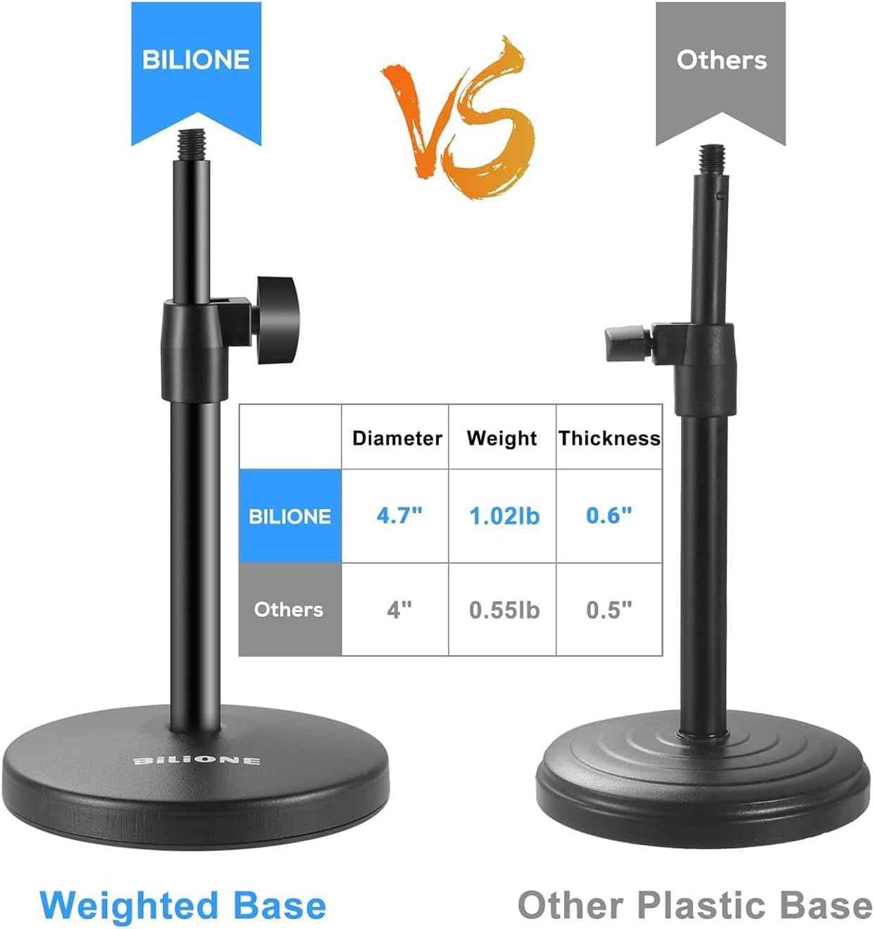 [More stable] The round base with the weighted base design weighs 1.02 pounds and will not be easily knocked down. Metal tube is stronger than ordinary plastic tube and easily support heavy microphones