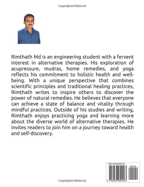 MUDRA THERAPY (100+ MUDRAS) Mudra Therapy consists of symbolic or ritual gestures made with the fingers. It is a Natural Therapy that has been used for centuries to treat a variety of diseases. Our body is composed of five elements, and each of the five fingers represents one of these elements: Thumb Finger – Fire or Sun Index Finger – Wind or Air Middle Finger – Sky or Space Ring Finger – Earth Little Finger – Water Emotional Imbalances and Their Impact on Organs: Excess emotions can affect specific organs in the body: Joy – Heart Fear – Kidney Anxiety – Lungs Pensiveness – Spleen Anger – Liver By practicing Mudra Therapy, you can control these five elements, restore balance, and cure a wide range of ailments. This book features 100+ Mudras, each aimed at promoting holistic healing, with specific mudras to address over 300 diseases. From physical discomfort to emotional imbalances, this simple yet powerful technique helps manage both your physical and mental health. To make your practice even more effective, QR codes are included with every mudra in this book. Simply scan the QR code to access a video demonstration of each mudra, ensuring you perform each gesture correctly and maximize its healing benefits. Start practicing today and experience the transformative effects of mudras for a healthier, more balanced life.