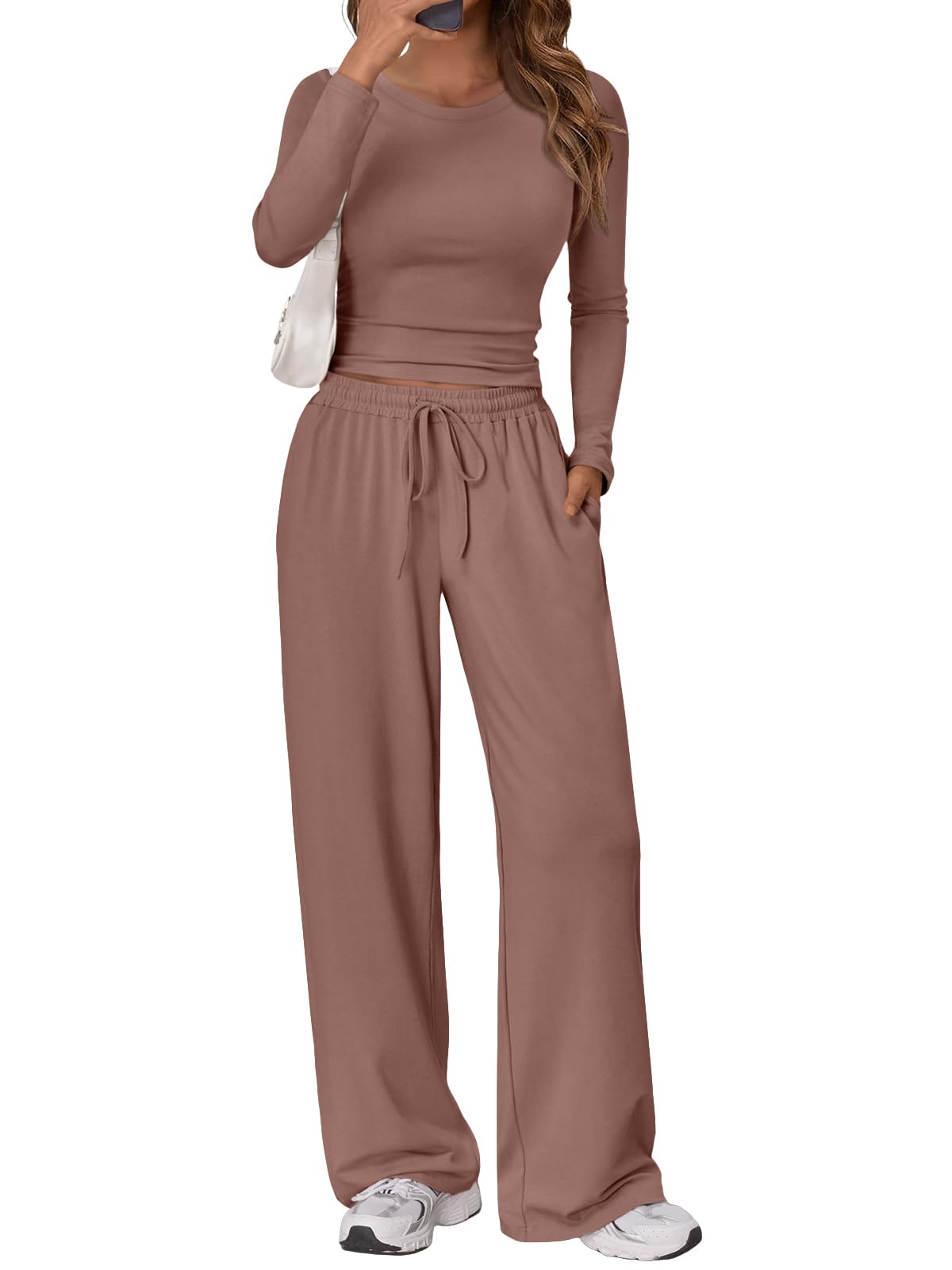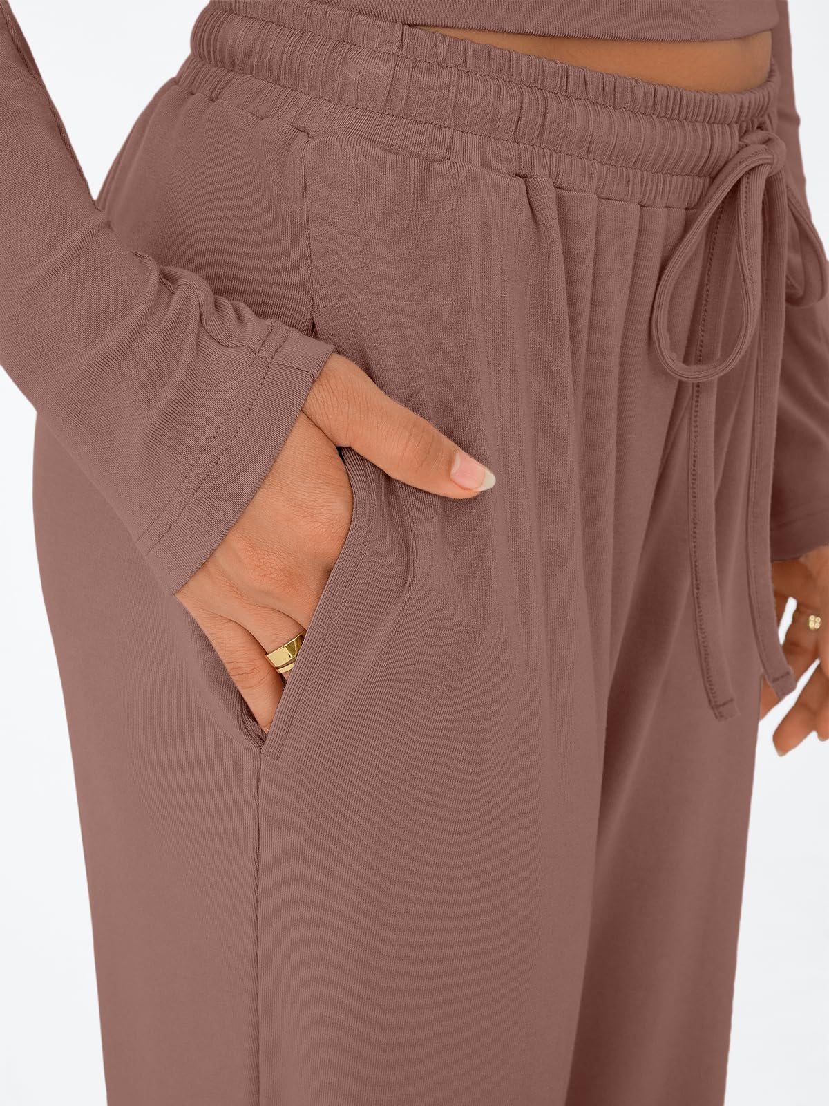 Design & Style: With a sleek crop top and wide-leg pants, this set is designed for those who love a mix of style and relaxation. The side ruching adds a touch of elegance, while the drawstring waist on the pants guarantees a comfortable fit that moves with you.