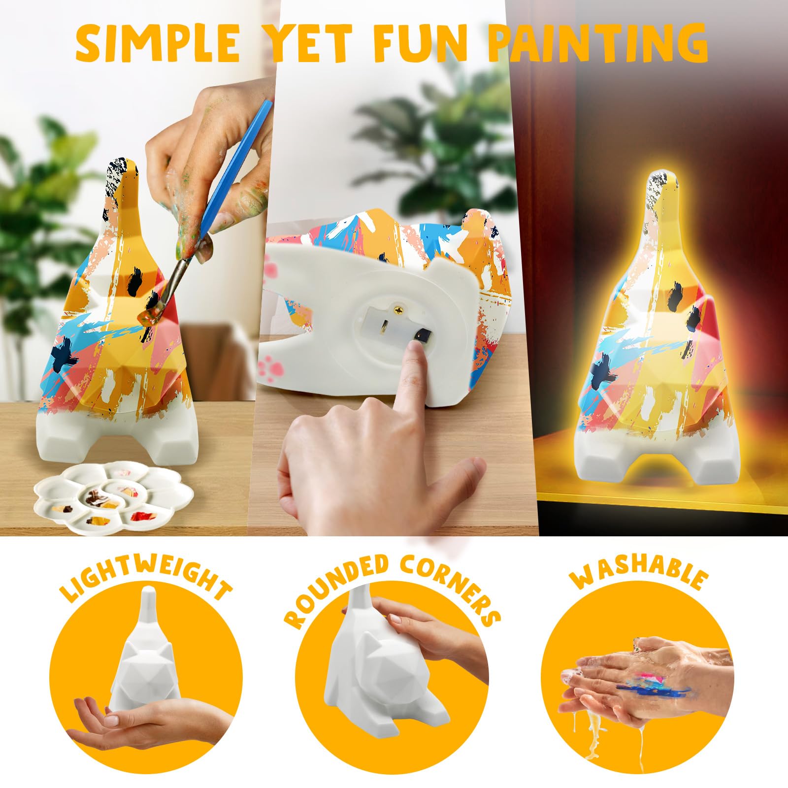 đăUse As Night Light Or Home Decorationă Light up your room with a cat lamp you've painted yourself! This cat craft kit not only allows kids to paint their own cat lamp but also lights up their space with their artistry. It's ideal for sparking creativity in arts and crafts for kids ages 8-12.