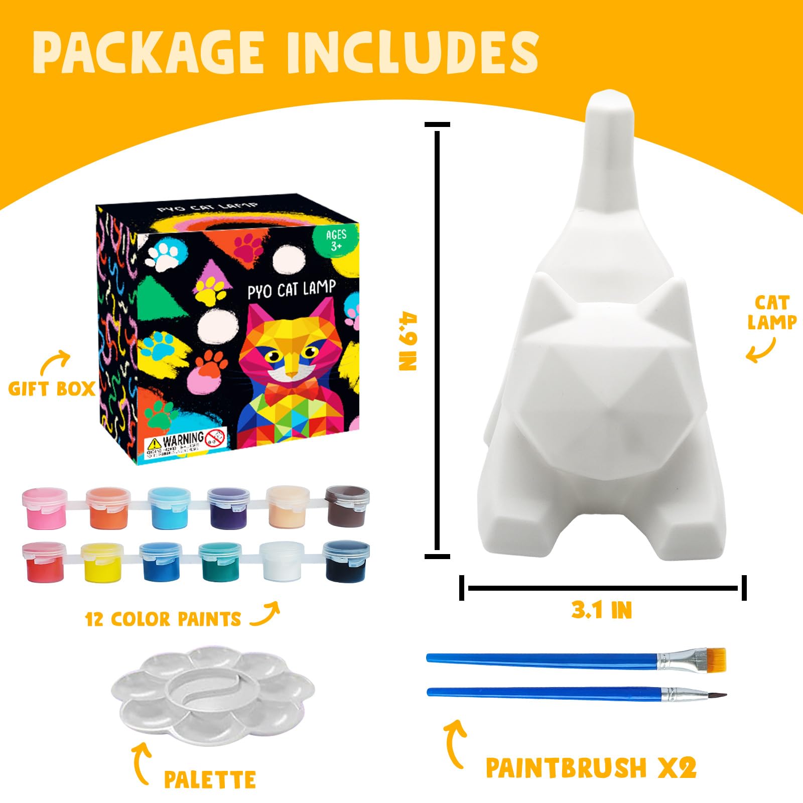 đąăCreative Cat Craft FunăDive into the world of creativity with our Paint Your Own Lie Cat Lamp kit! This set includes 1 lie cat lamp, 12 paint colors, a palette, and 2 paintbrushes. Perfect for cat art kids and crafts for teens, this kit promises hours of fun and creativity for arts and crafts enthusiasts aged 4-12.