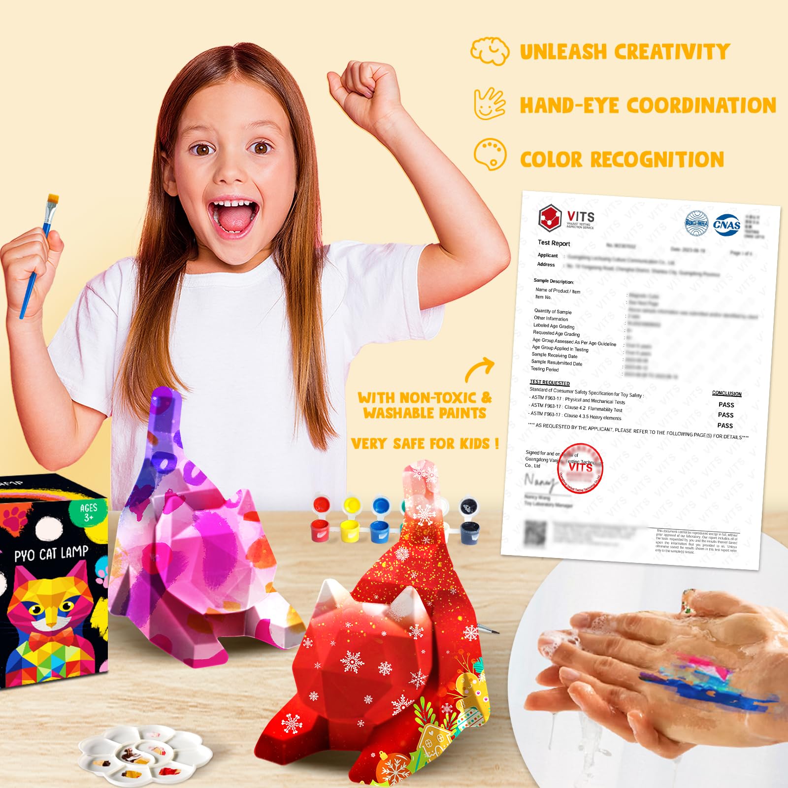 đăSafe and SuitableăThis kids' craft kit is designed for safety and ease of use, ideal for crafts for girls 8-12. Special design of the cat lamp makes painting very interesting and is perfect for kids who adore both crafts and cats. The kids' art set is sure to provide hours of entertainment.