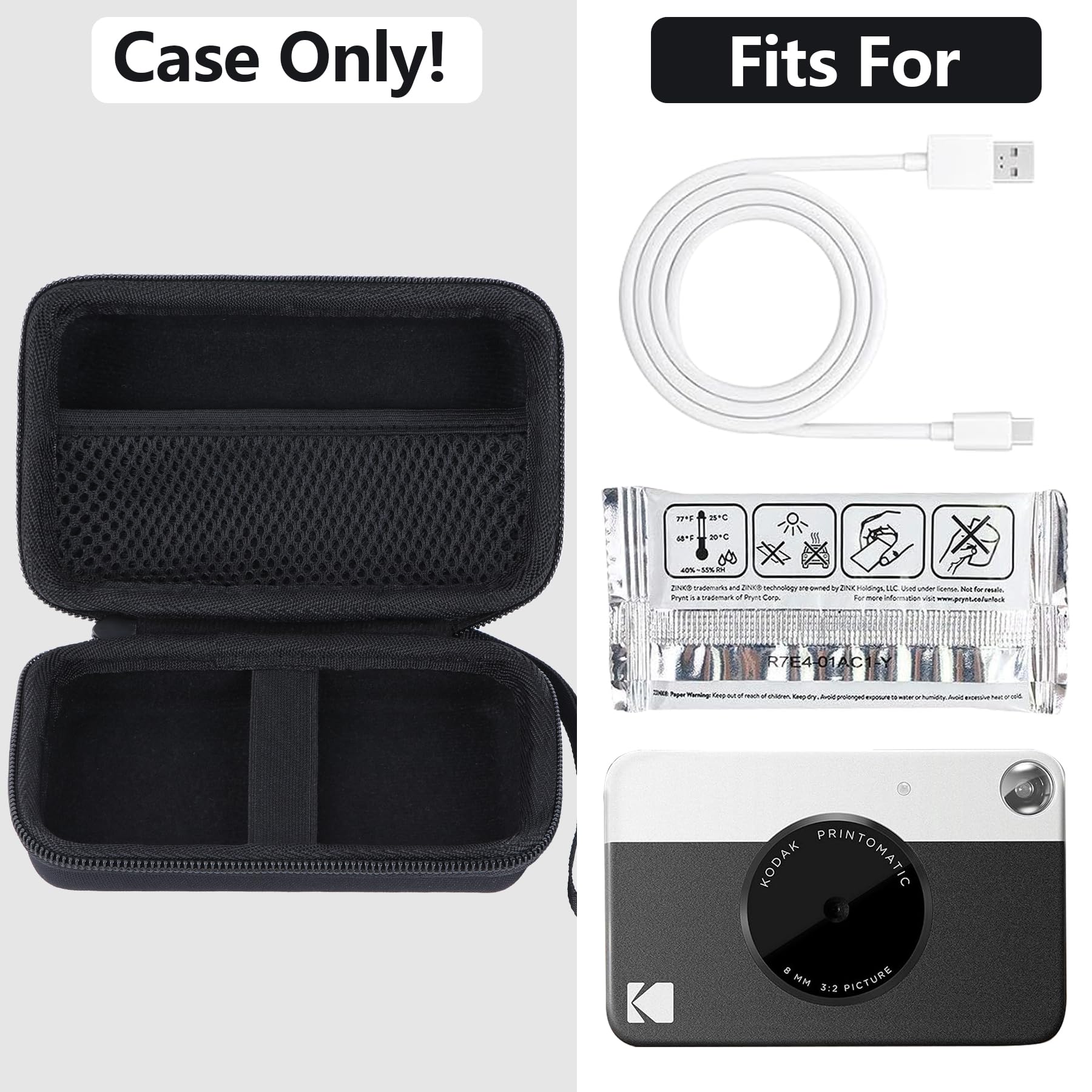 Compatibility: This RIYADAone storage case is made for KODAK Printomatic Full Color instant print digital camera. This KODAK Printomatic instant print digital camera case offers secure protection for your KODAK Printomatic instant print camera. This case for Printomatic instant print camera keep your Printomatic camera in a good condition