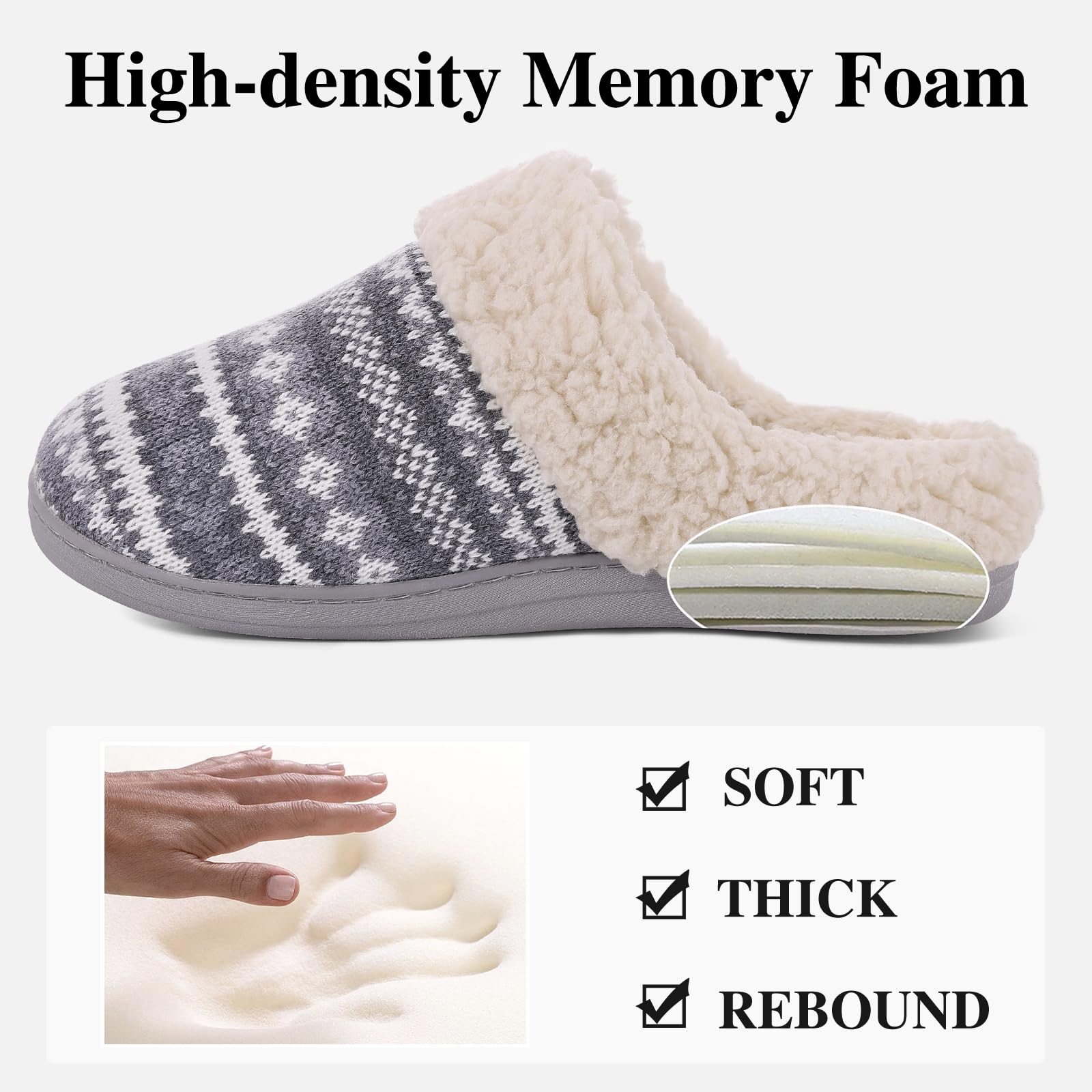 𝐂𝐥𝐚𝐬𝐬𝐢𝐜 𝐖𝐢𝐧𝐭𝐞𝐫 𝐊𝐧𝐢𝐭 𝐒𝐥𝐢𝐩𝐩𝐞𝐫𝐬: The sweater knit upper with embroidered pattern like a sweatshirt for your feet, along with cozy wool-like plush fleece lining that keep your feet warm on every cold nights. And easy slip-on design with plush collar will provie extra comfort.