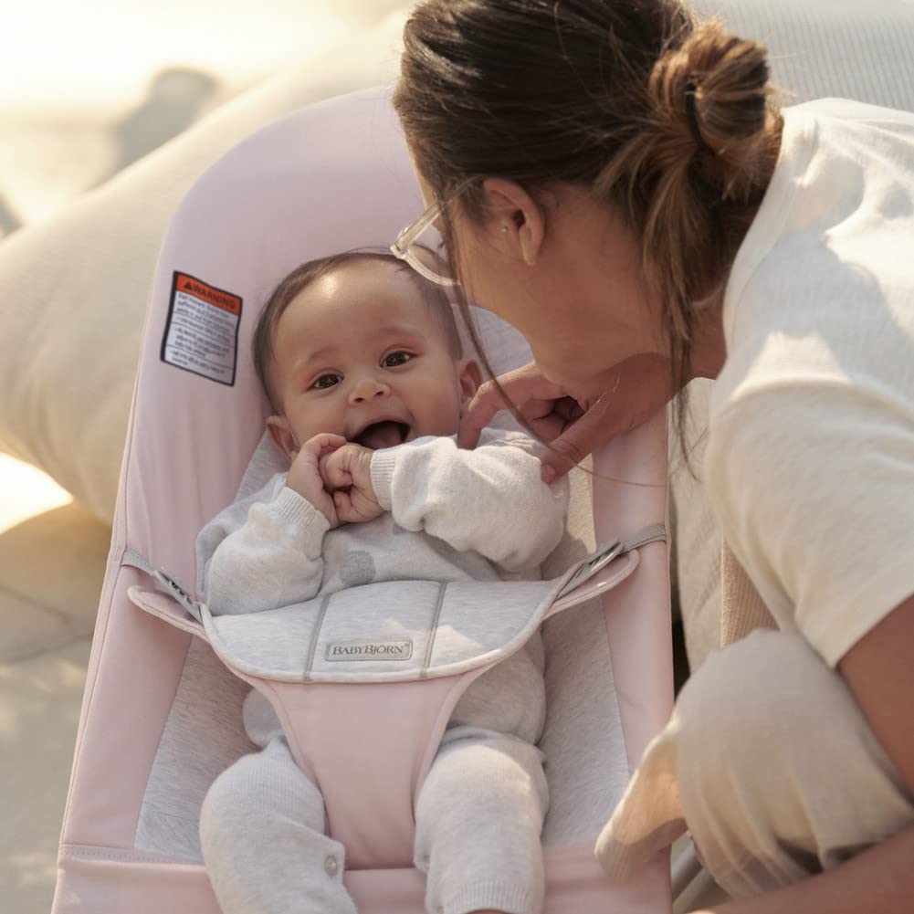 Our lightweight bouncers are easy to move around and take with you—they’re a cozy place for your baby to play or rest close by you while you get the chance to take a shower, unload the dishwasher or prepare dinner. The natural rocking of a bouncer usually has a soothing effect on a very young baby. As your baby grows and learns how to control the rocking, the bouncer becomes even more fun and also stimulates your baby’s balance and motor skills.
