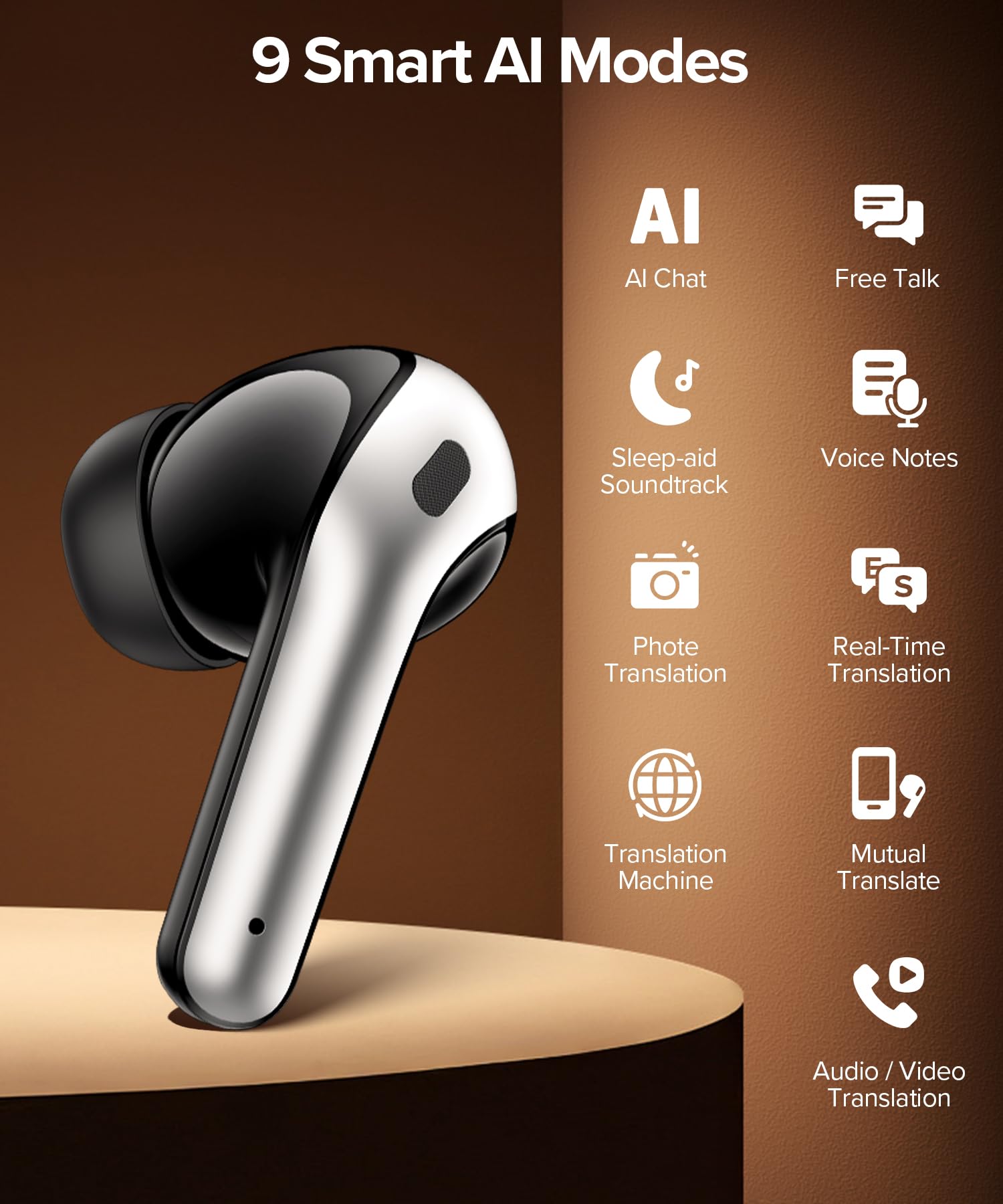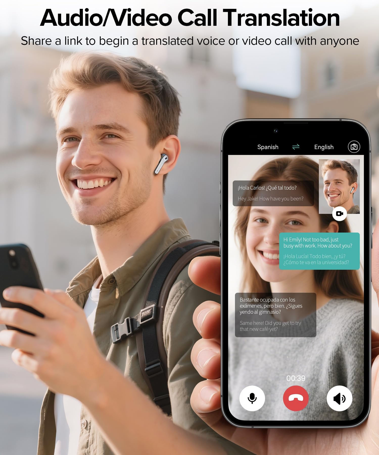 AI Translator Supporting Up to 165 Languages : X08 AI translation earbuds support translation between up to 165 languages, covering most major global languages for international communication. Combined with 9 smart AI modes, including Free Talk Mode, Photo Translation, Audio Translation, and Video Call Translation, this Audifonos Traductores Inglés Español are designed to handle face-to-face conversations, remote meetings, travel, and multilingual daily interactions with flexibility