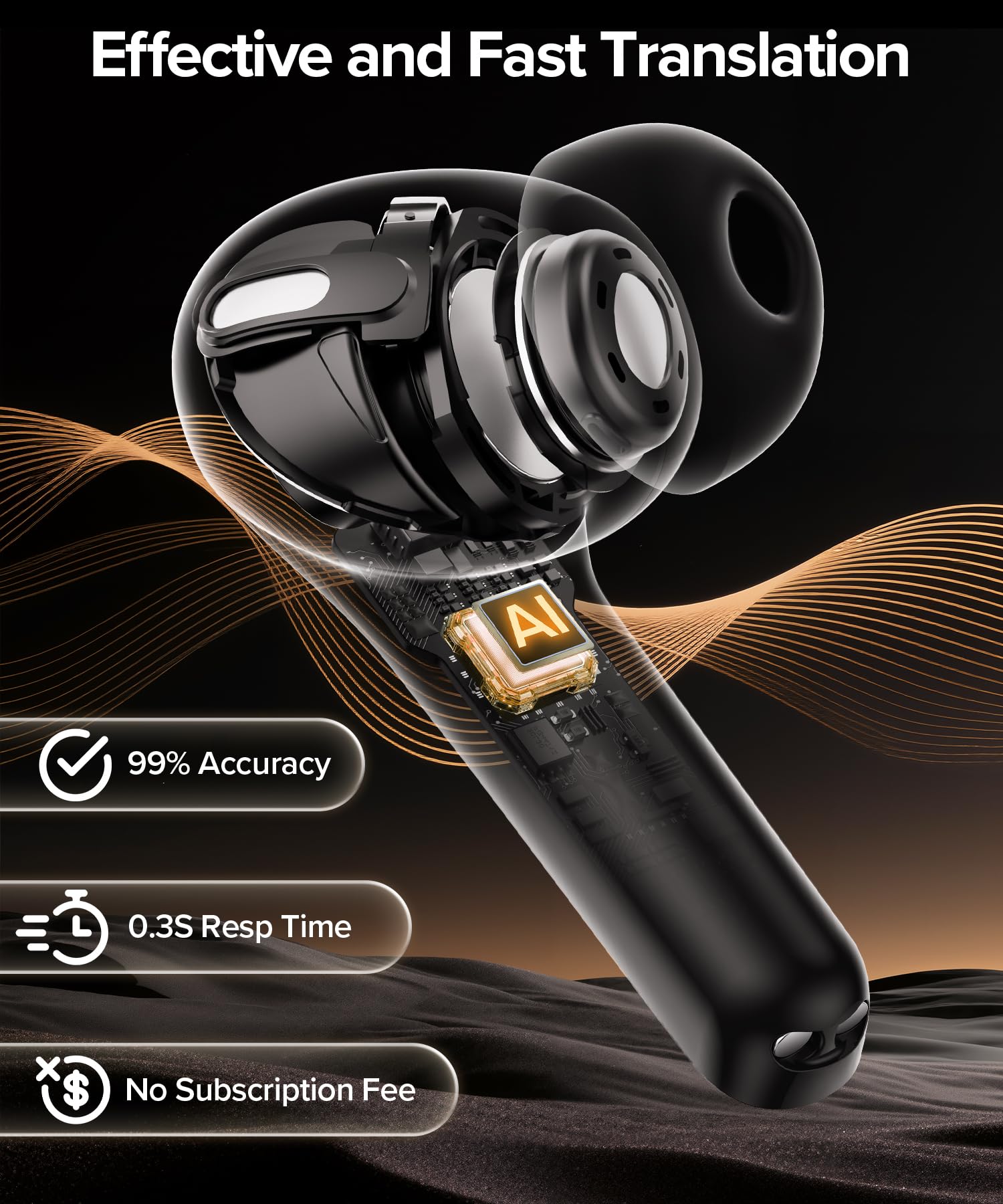 No Subscription Fee & Simple App Control: Offer powerful AI translation features with no subscription fee, helping avoid ongoing costs. Using the companion app, users can access translation modes, select from the 165 supported languages, and manage settings easily. Simple setup and intuitive controls make these translator bluetooth headphones suitable for both beginners and professional users