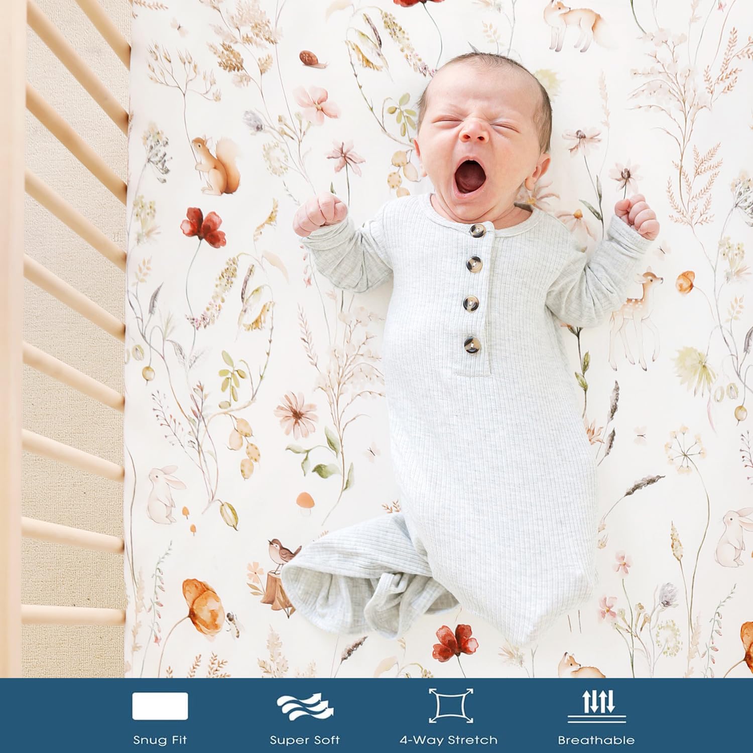 Ultra Soft & 4-way Stretch: Made of high quality soft stretchy jersey knit fabric. GRSSDER baby crib sheets neutral offer a breathable, sweat-absorbent tee shirt like feel for exceptional comfort, providing your little ones a safe and to stay in place throughout the day.