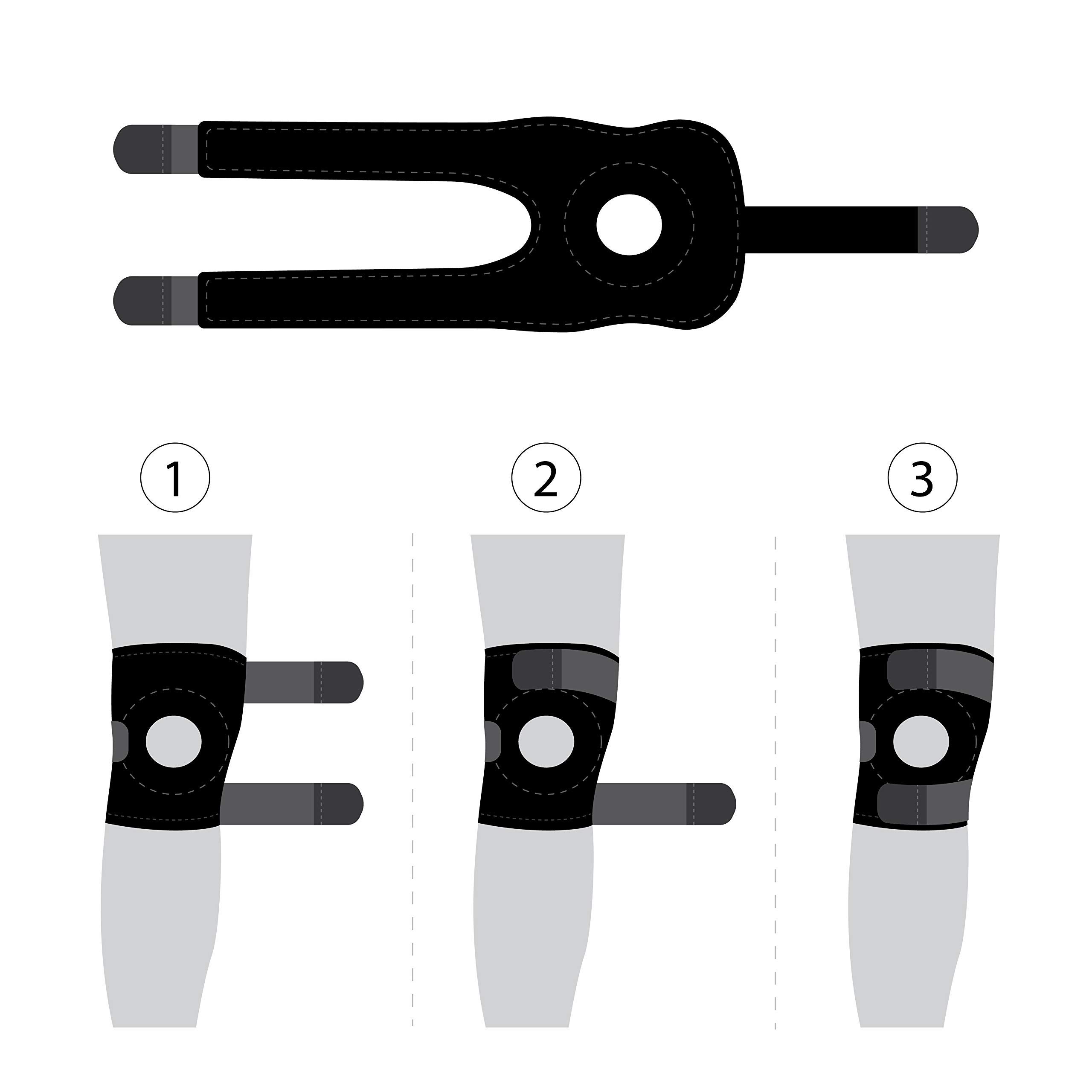 Universal Fit - Single support, wearable on either the left or right knee - adjustable high-grip strapping fits knees from 13 to 18 inch or 33 to 46 cm in circumference. Please refer to the size chart and measure your size before making a purchase.