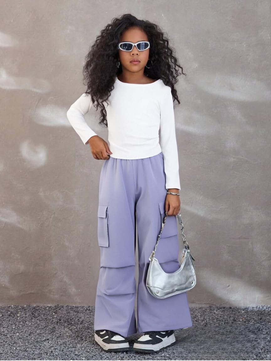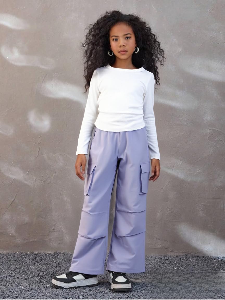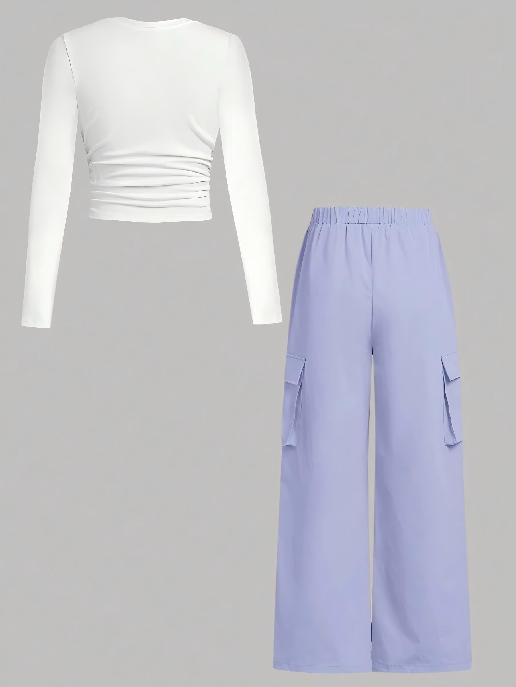 👖 Trendy Yet Practical – The ruched long sleeve tee pairs perfectly with the high-waisted cargo joggers, creating a cute outfit for girls who love both fashion and function.