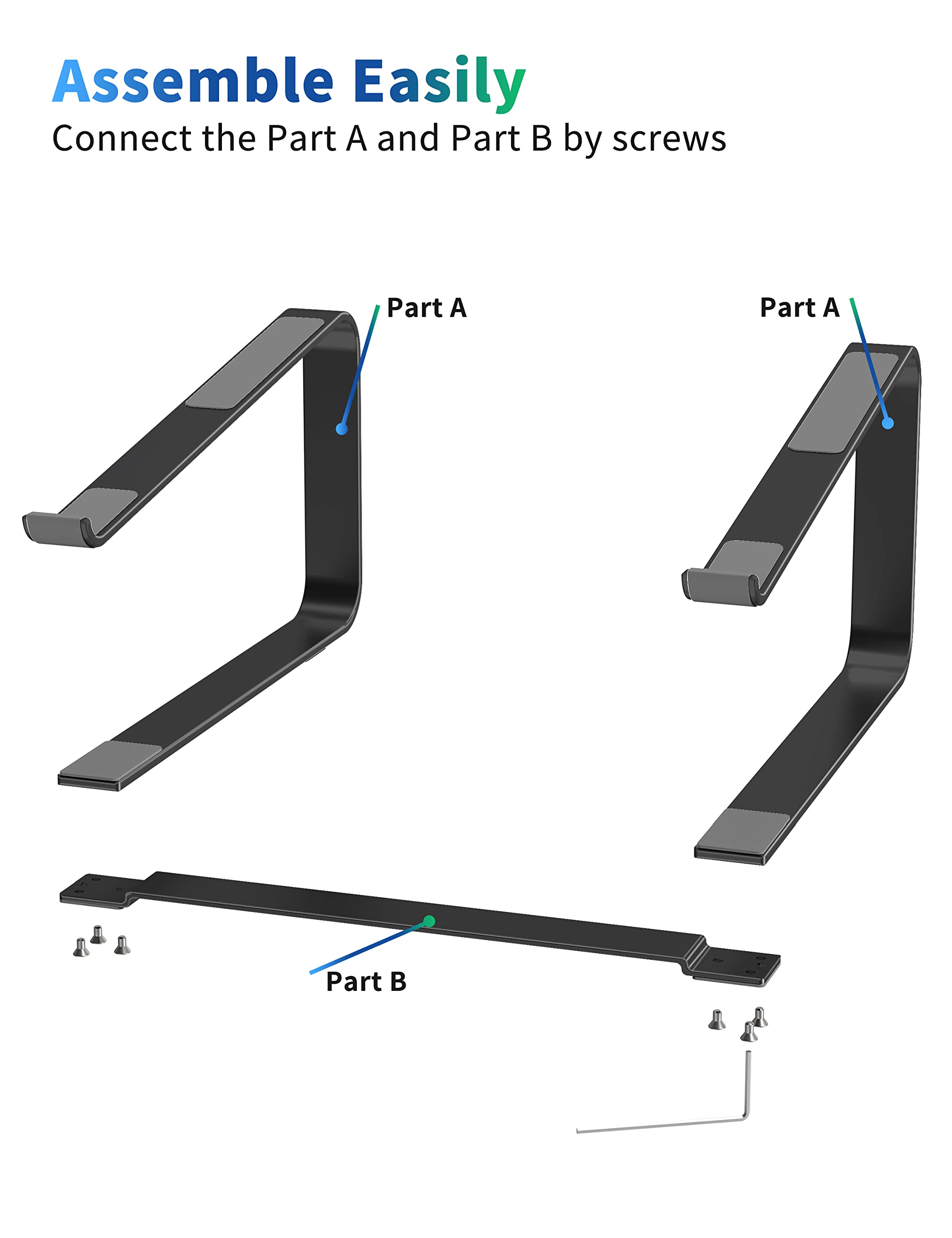 Easy to Assemble - By the little tools in the package, it is convenient to assemble th laptop stand in 2 steps.