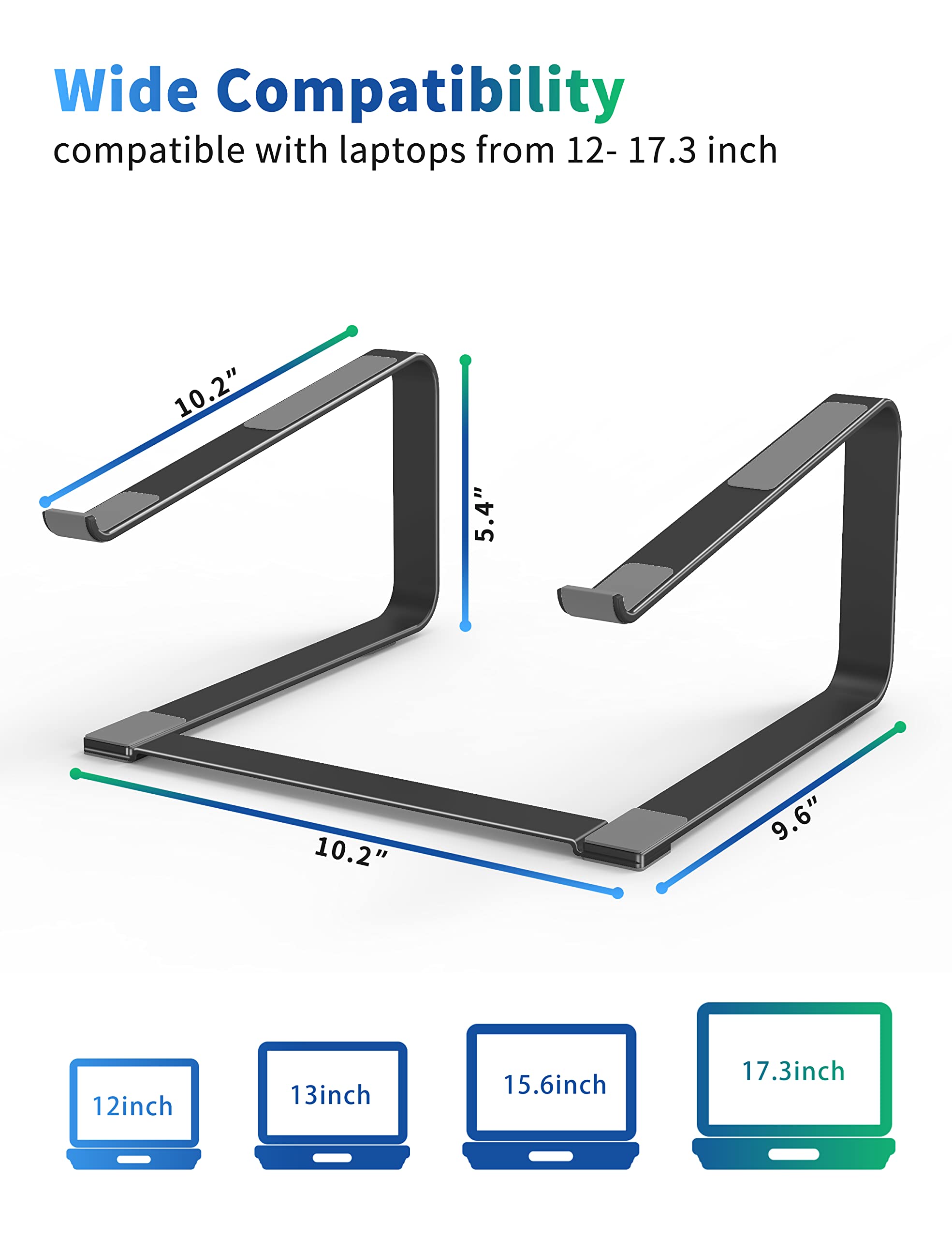 Compatitable with 12-17.3 Inches Laptops - Slim but wider support arms. The laptop stand fits all laptops 12 to 17.3 inches, such as notebook PC computers 12 inches, 13 inches, 13.3 inches, 14 inches, 15 inches, 15.4 inches, 15.6 inches, 16 inches, 17 inches, 17.3 inches, etc.
