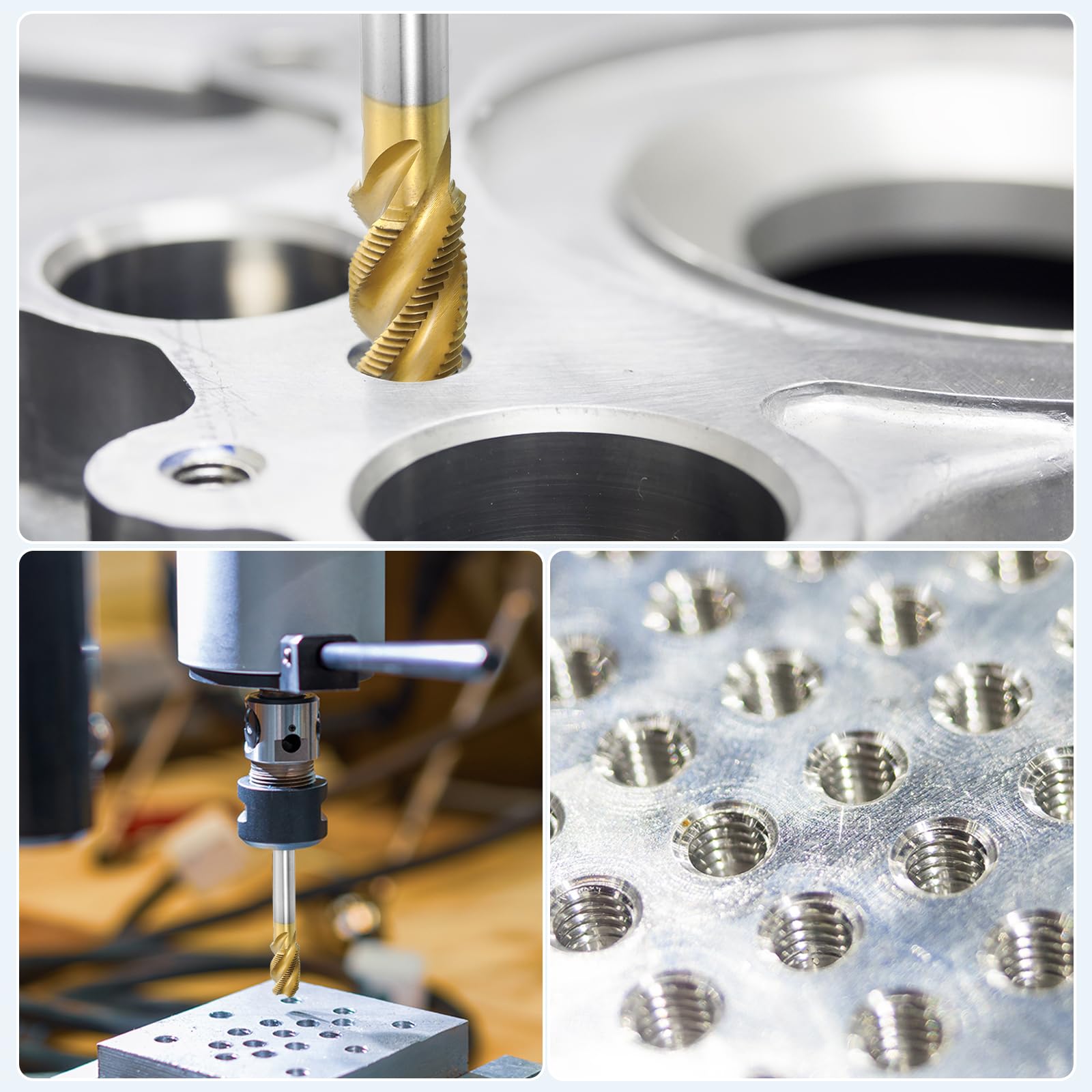 Tips: Tapping angle should be 90 degrees vertical and stable. The tapping depth should not exceed 1.5 times the diameter of the tap. Control the speed according to the material hardness. The higher the hardness, the slower the speed.