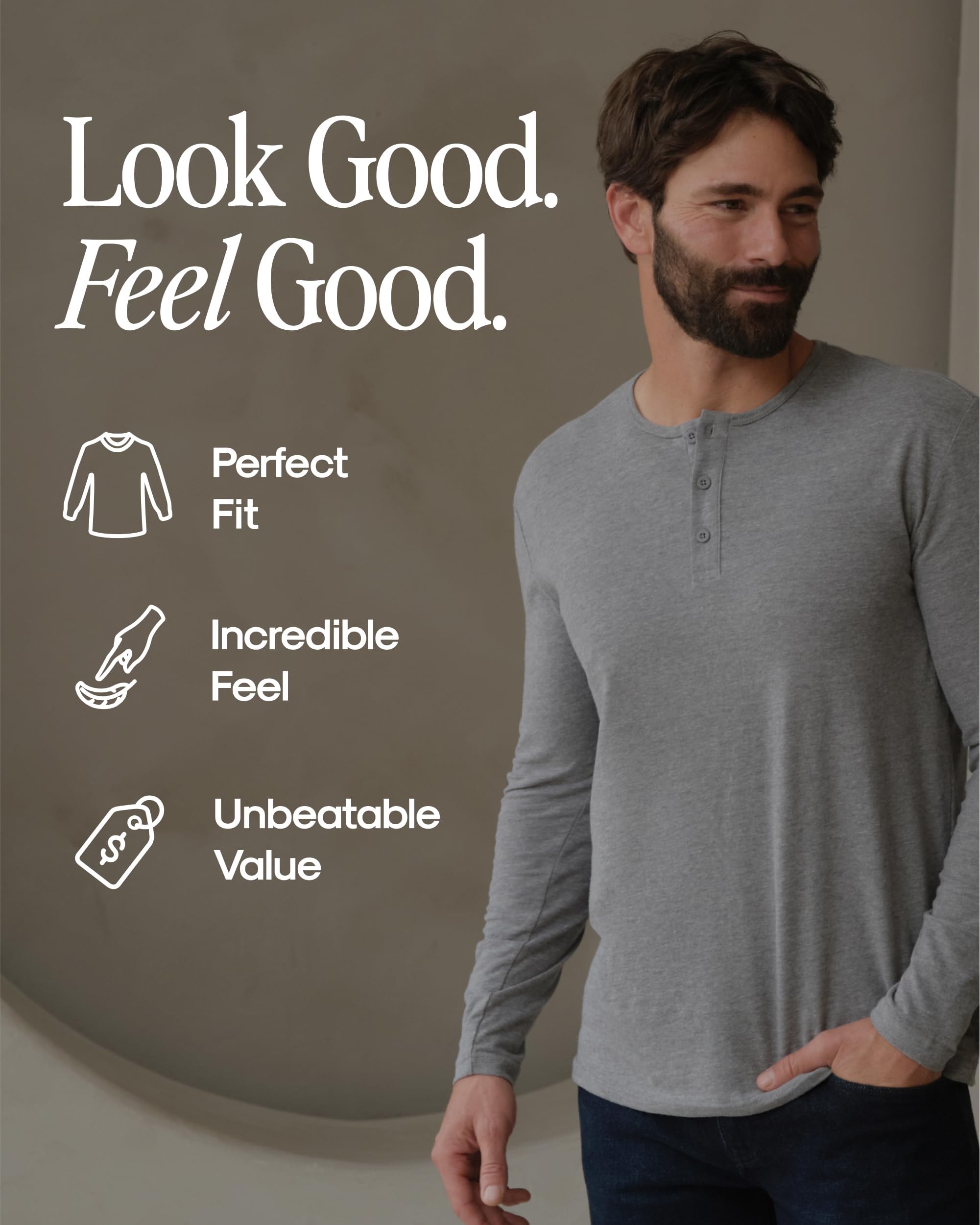 THREE WAYS TO WEAR: Choose your mens long sleeve shirt pack from our classic crew (60% combed ringspun cotton/40% polyester jersey), henley shirts for men long sleeve (same soft blend) or the thicker waffle-knit (49% Modal/49% Cotton/2% Elastane).