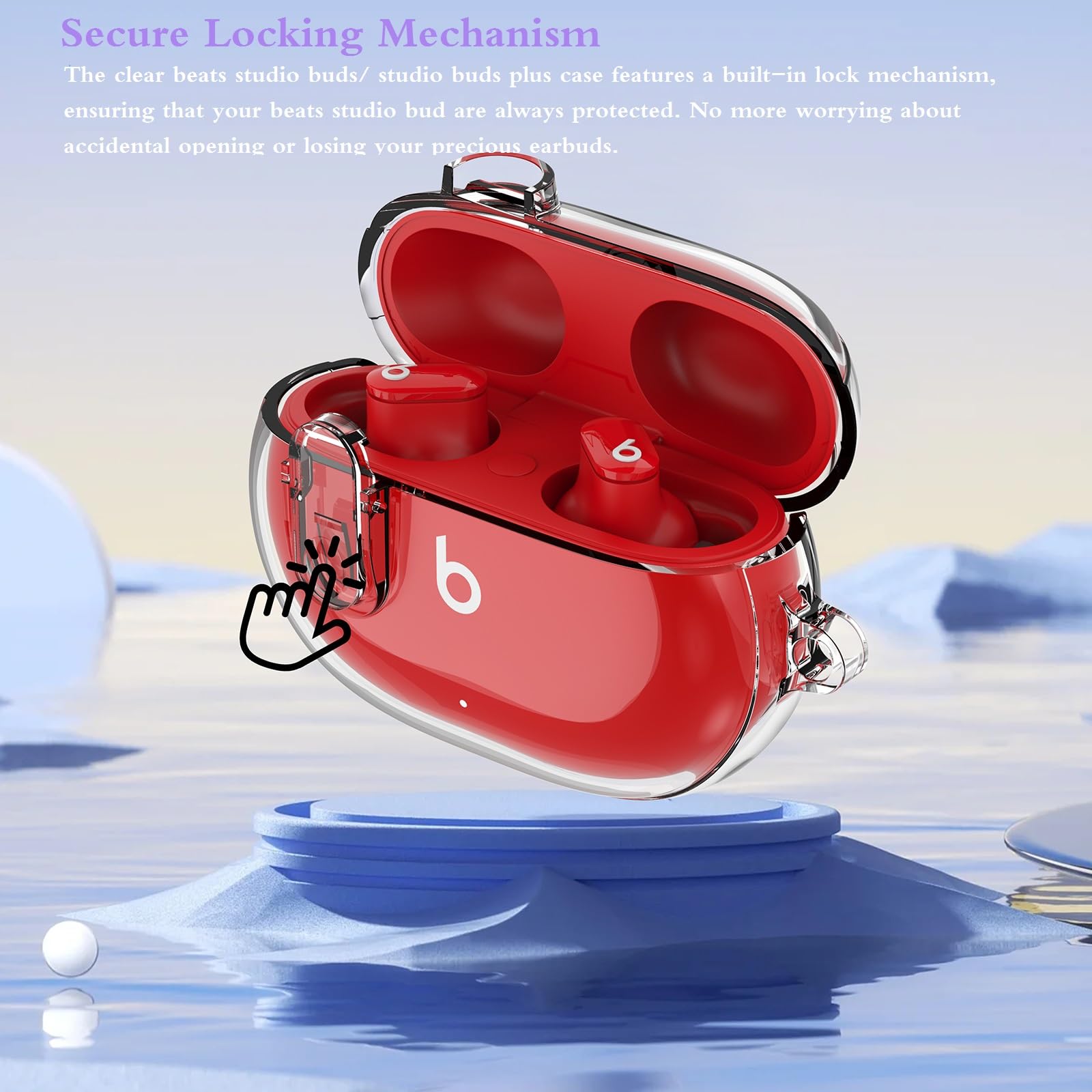 ✅Upgraded Secure Lock -- The locking function can secure the cover of the shell firmly, open the top cover with one click. The Beats Studio Buds / Beat studio bud plus case also comes with a portable carabiner clip to easily hook it on to your bag, belt loop, keys...at your convenience.