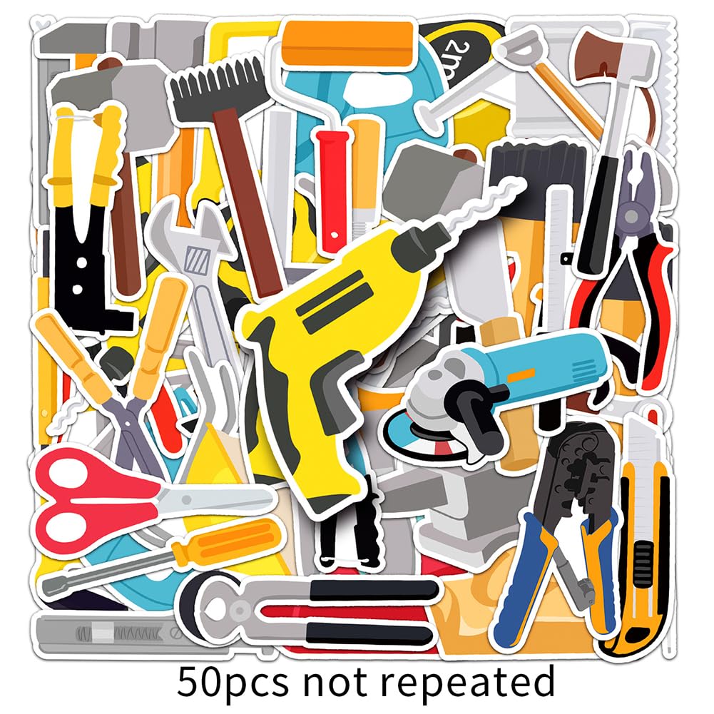 【50Pcs Included】—These tools theme stickers pack contains 50pcs no duplicated stickers, can be attached to computer, Laptop, skateboard, Luggage, refrigerator, guitar, motorcycle, bike, Mobile Phone, etc. Various patterns sticker pack can be great gift for children, kids, youth, friends, family and other DIY decoration.