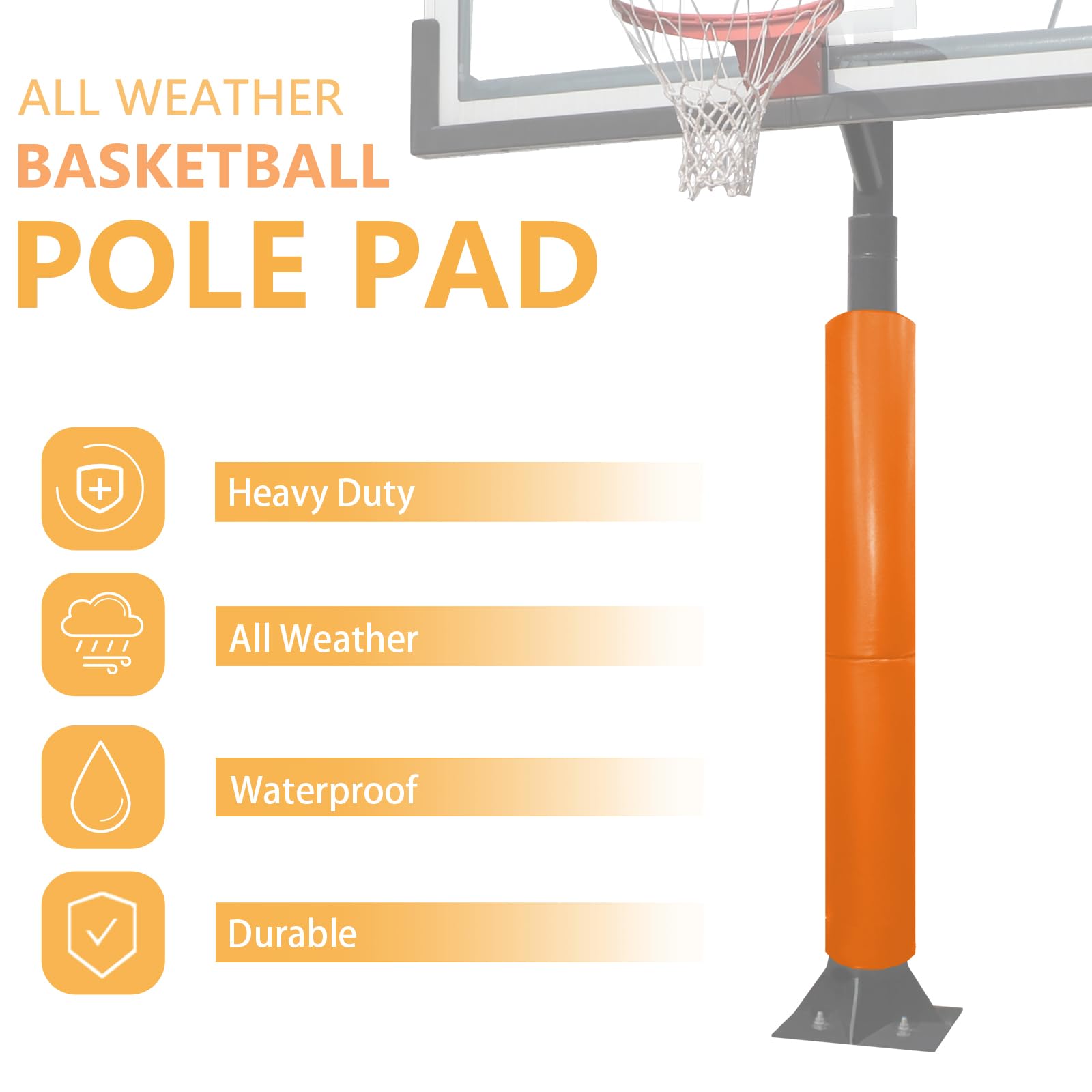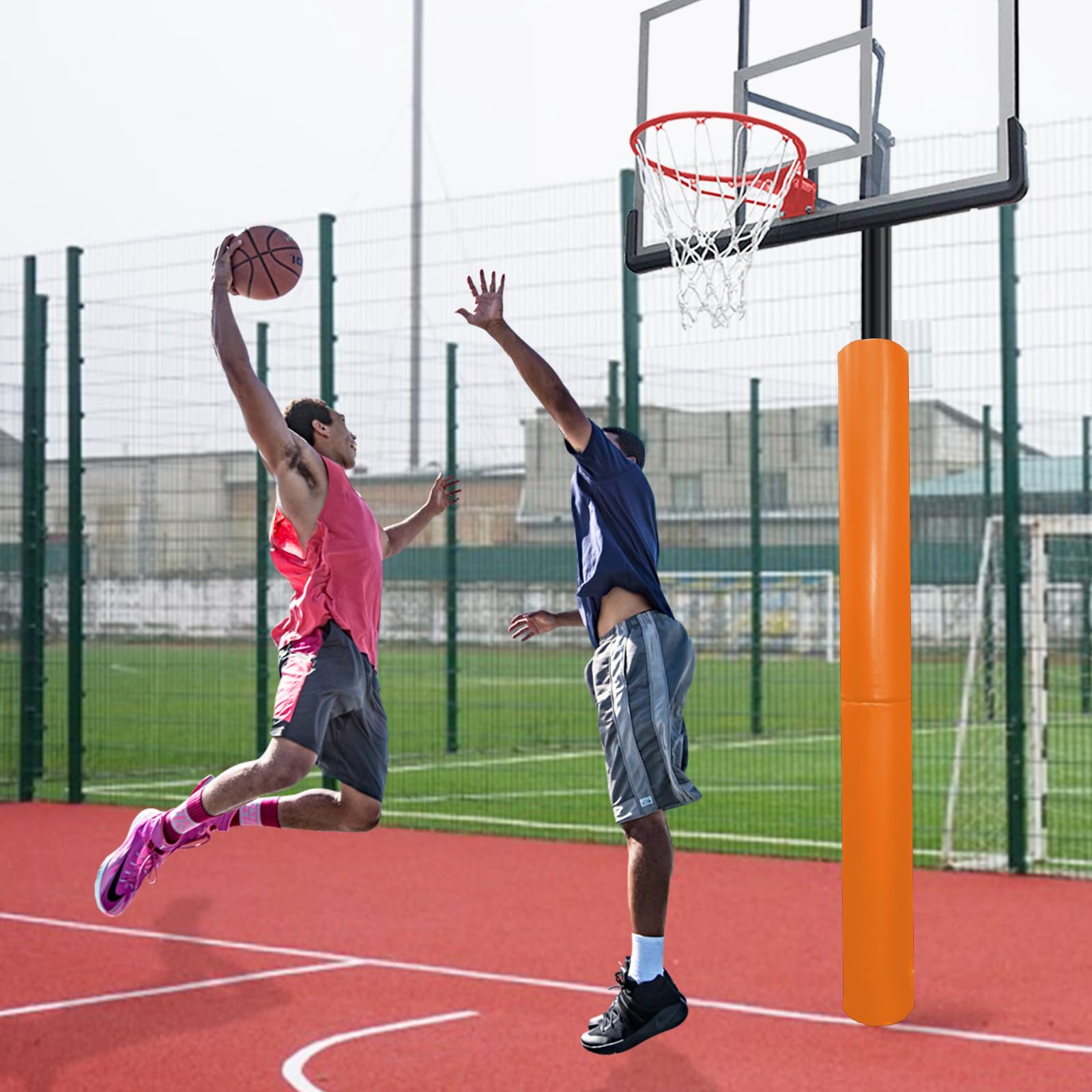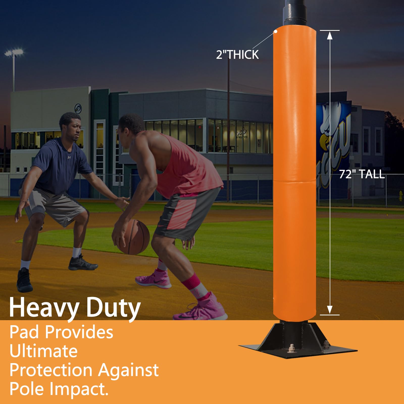 PLAYER PROTECTION — Basketball pole pad provides protection and safety for players during aggressive, rough play.