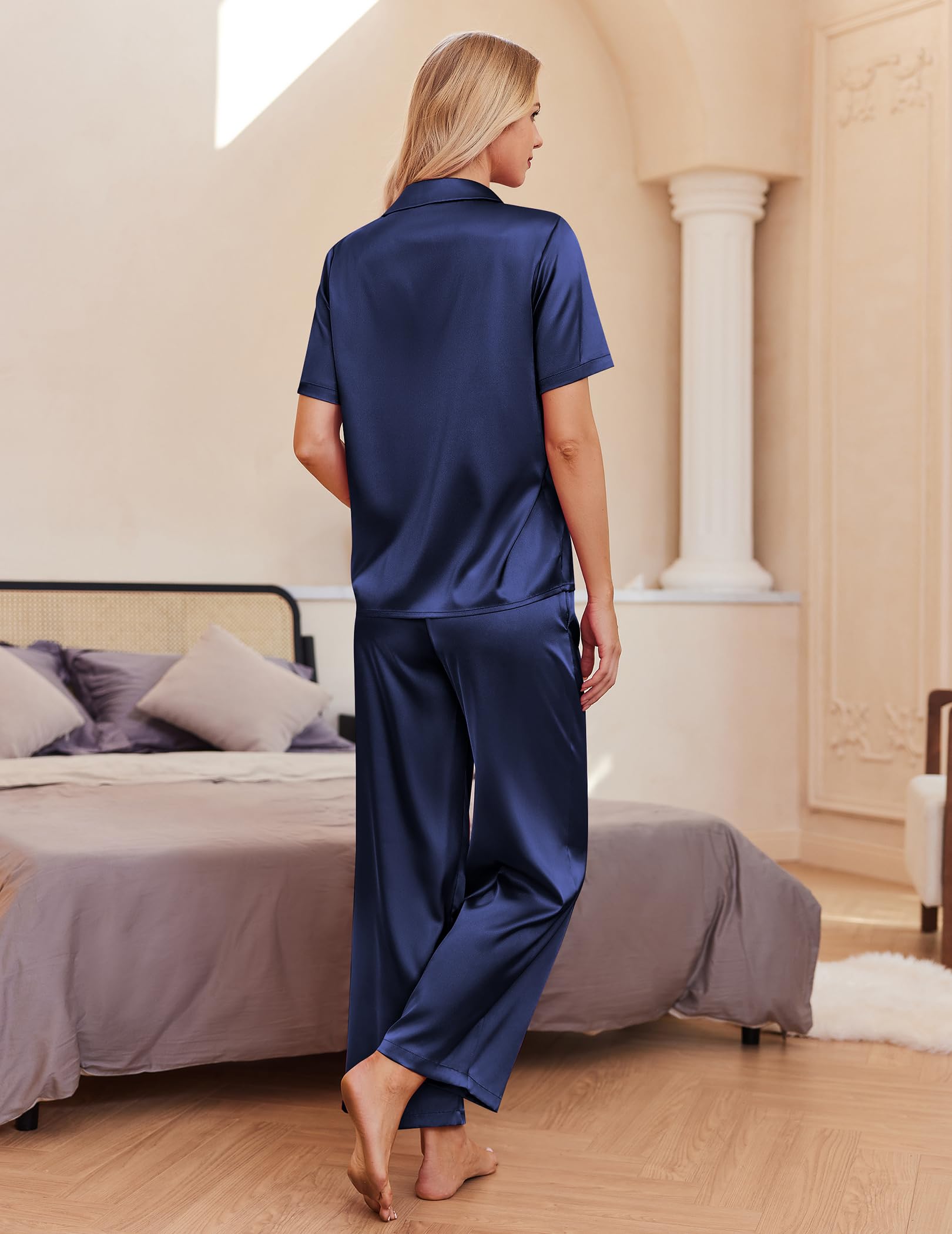 Material: Silk pajama set is made of premium lightweight, breathable and skin-friendly fabric, just like wrapped in a cloud, helping you have a sound sleep