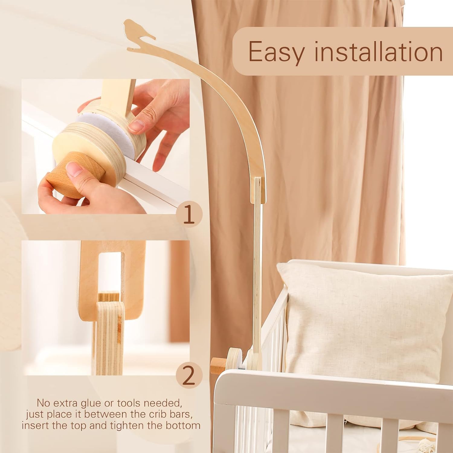 Premium Wooden Construction: Crafted from high-quality wood, our mobile holder ensures durability and a natural aesthetic, contributing to a warm and comforting nursery ambiance