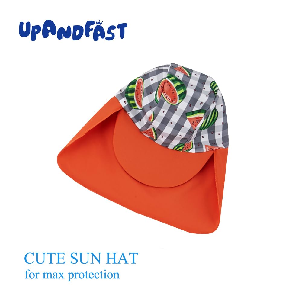CUTE SUN HAT: Toddler rash guard that comes with a lovely hat, it covers baby's delicate face and neck. which can give baby more protection when playing at the sea, beach or under the sun
