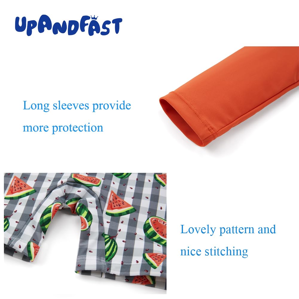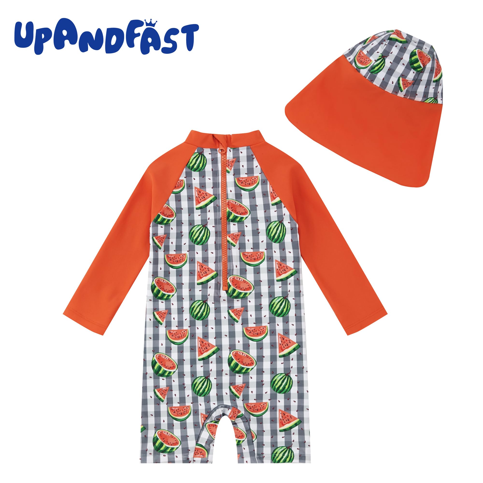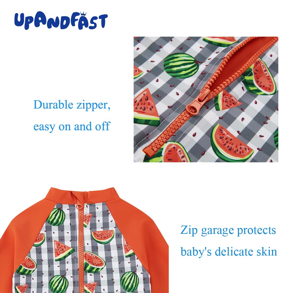HUMANIZATION DESIGN: This one-piece baby bathing suit has a front / back zip for convenient putting on and taking off. Zipper flap and garage protect your baby's delicate skin