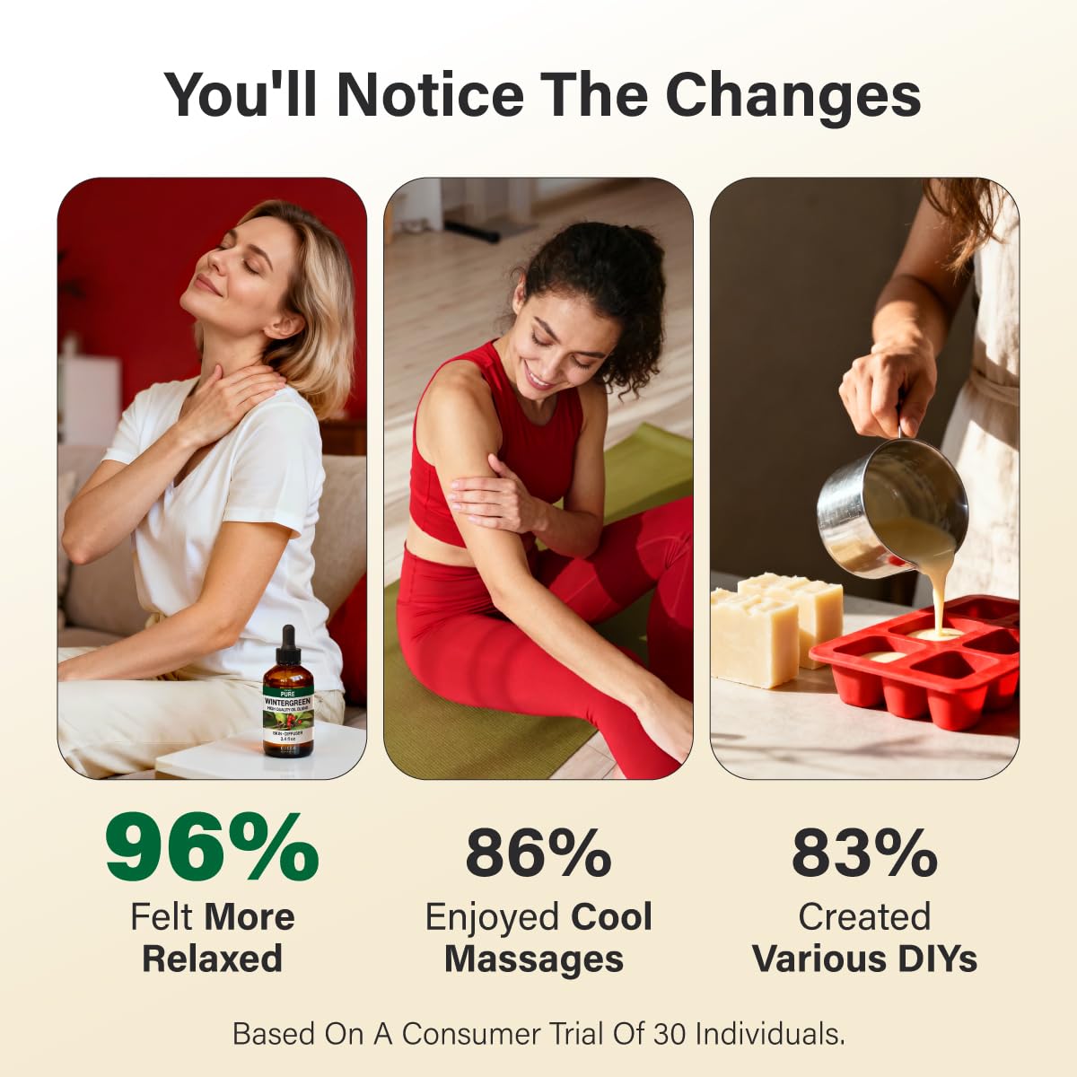 For those with active lifestyles, apply oil of wintergreen diluted in carrier oils to sore areas post-exercise. It delivers soothing warmth and deep comfort that eases muscle stiffness and tension, adding value to your self-care routine.