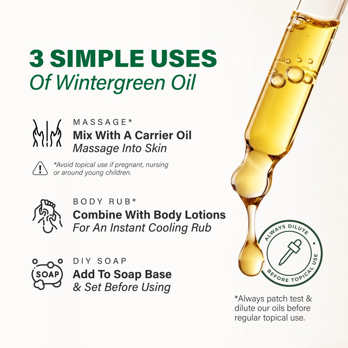 Especially enjoyed after long, tiring days, create wintergreen essential oil massage blends and apply topically to experience warm comfort for aching muscles--ideal for unwinding or indulging in spa-like retreats for targeted muscle comfort.