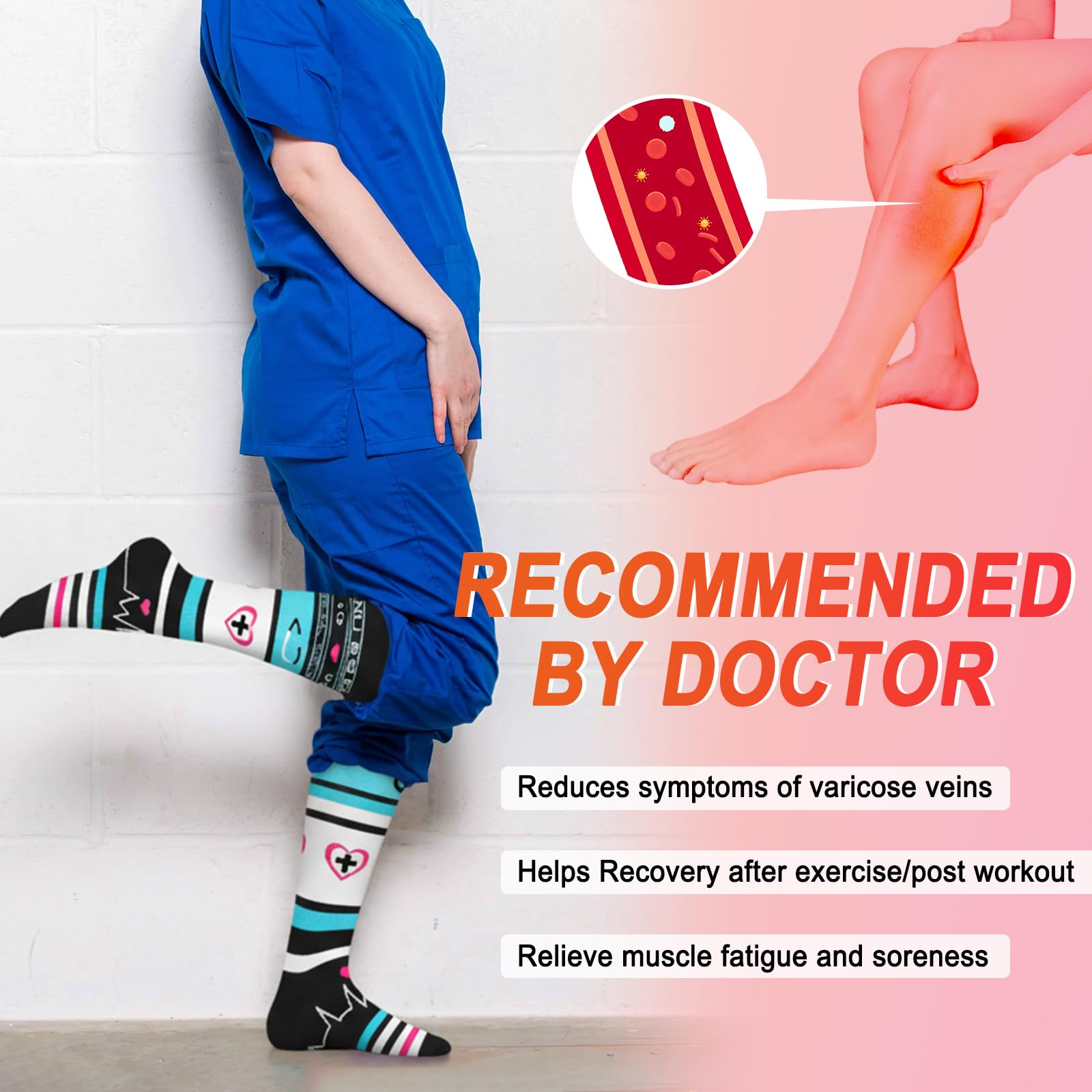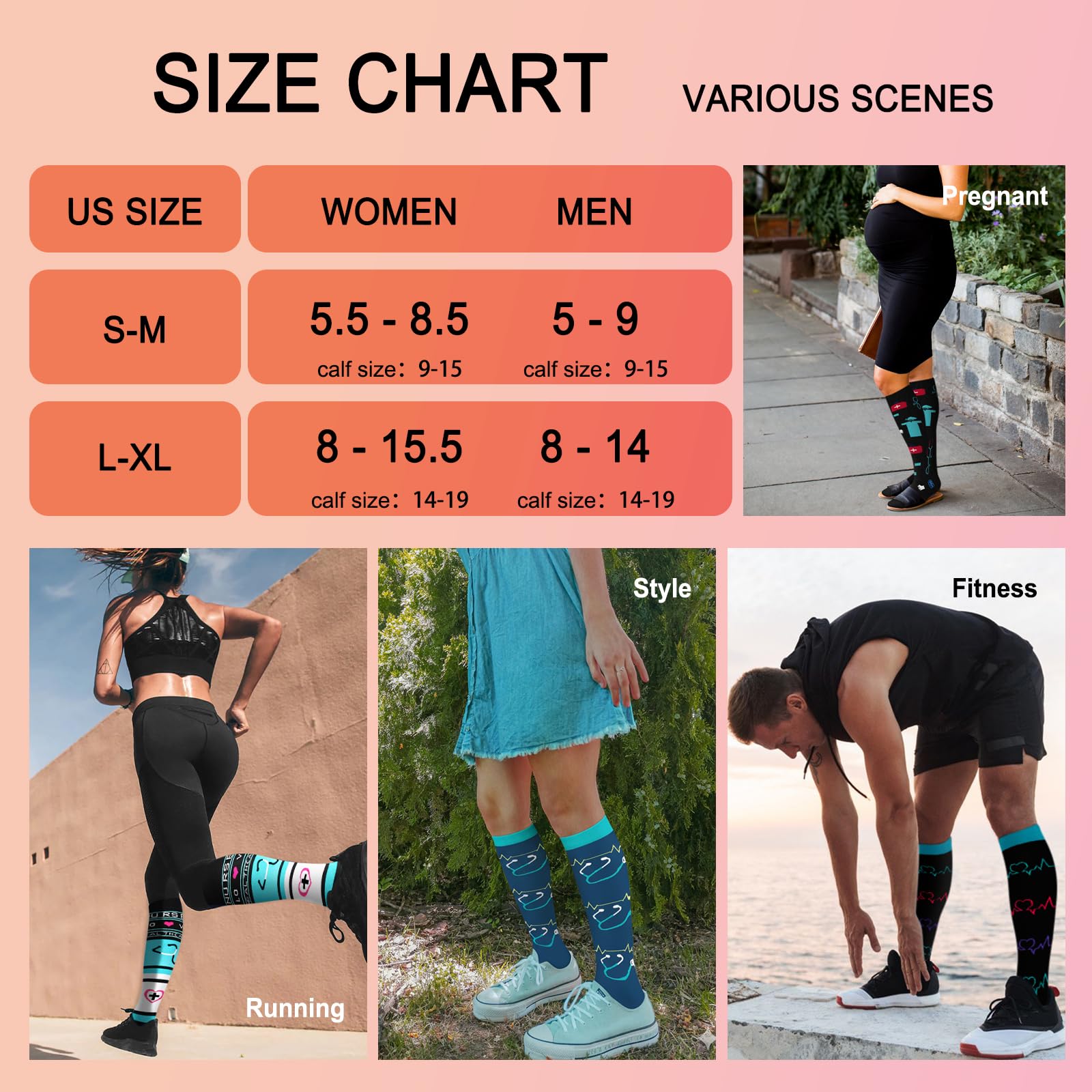Perfect for Every Occasion – From running, sports, and pregnancy to work and travel, these compression socks are versatile enough to meet your needs. They help to reduce swelling, improve circulation, and support blood flow. Whether you're on a flight, in the gym, or working a long shift, you'll experience the difference in comfort and performance with these socks.