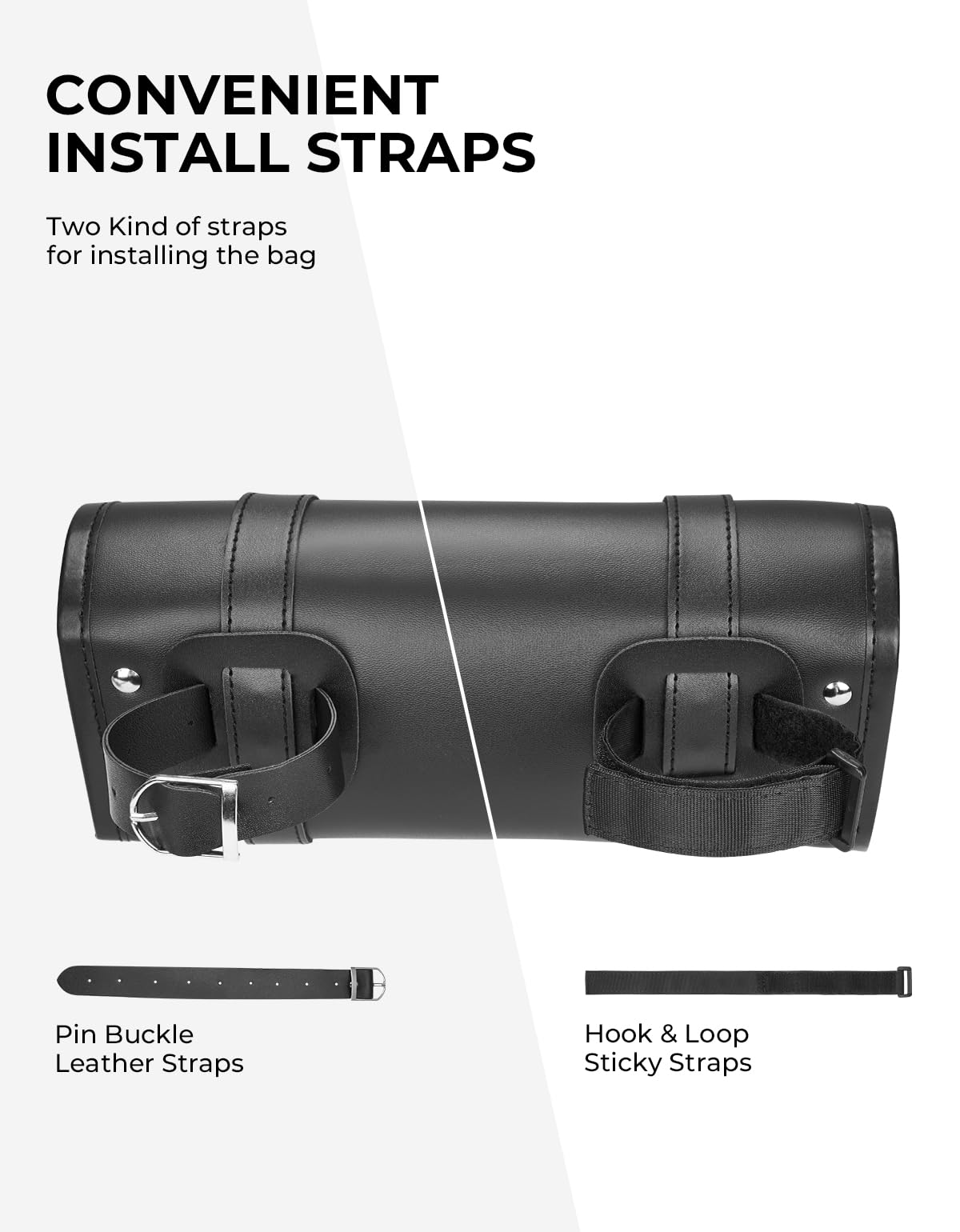 High-Quality Leather Material: The motorcycle fork bag is made from sturdy PU leather, ensuring long-lasting durability against various weather elements(THERE IS NO ZIPPER POCKET!!)