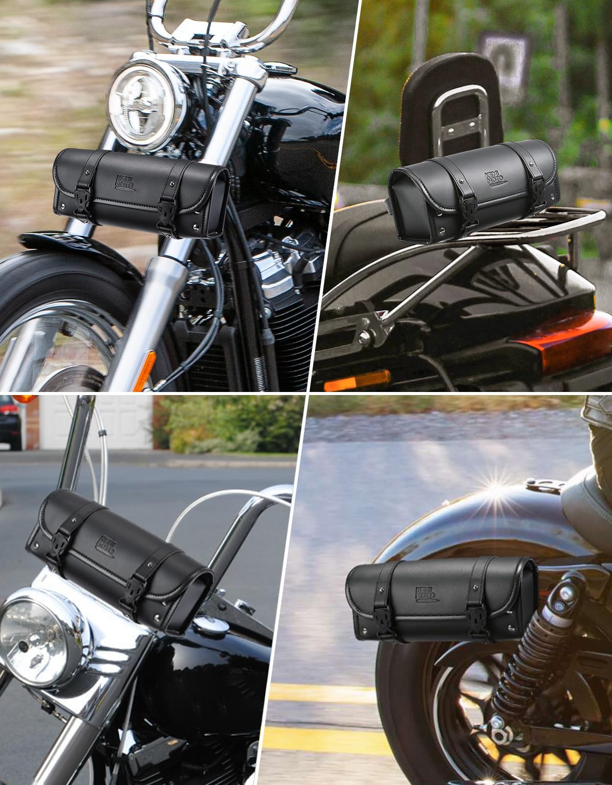 Wide Suitability: This motorcycle bag can be installed in the motorcycle front forks, handlebar, sissy bar, side frame. So it can be fit for lots of motorcycles and scooters, such as Sportster, Softail, Dyna, rebel. Note: Does not fit 2024 fat boy (THERE IS NO ZIPPER POCKET!!)