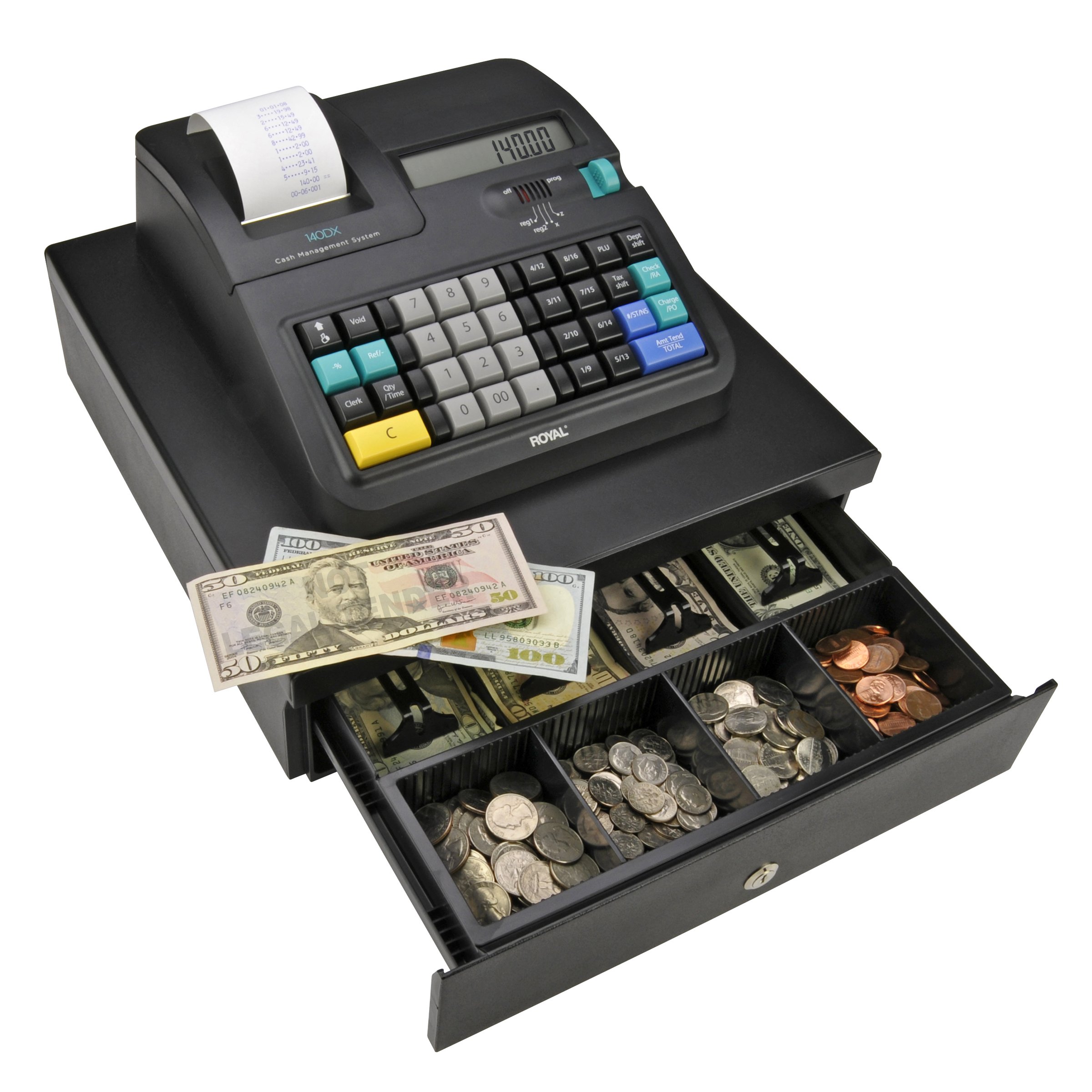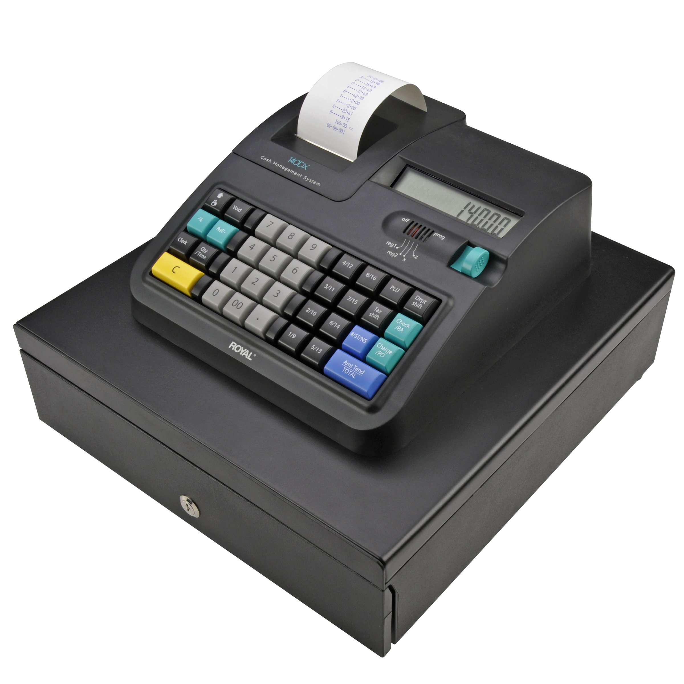 Royal 120DX electronic cash register. Electronic cash register with 999 price look-ups (s), 16 departments and 8 clerk ID system.
