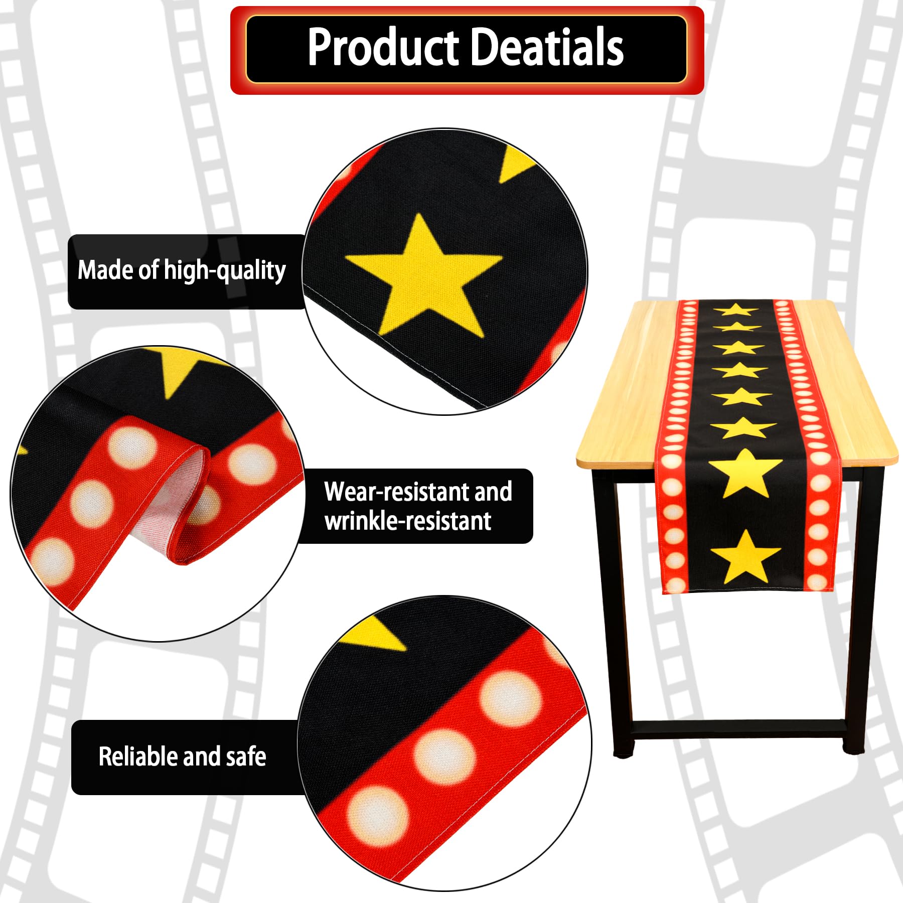 WIDELY DECORATION:Movie night party table runner can be decorated on the table, fireplace, on both sides of the door, on the floor and anywhere else you want to decorate