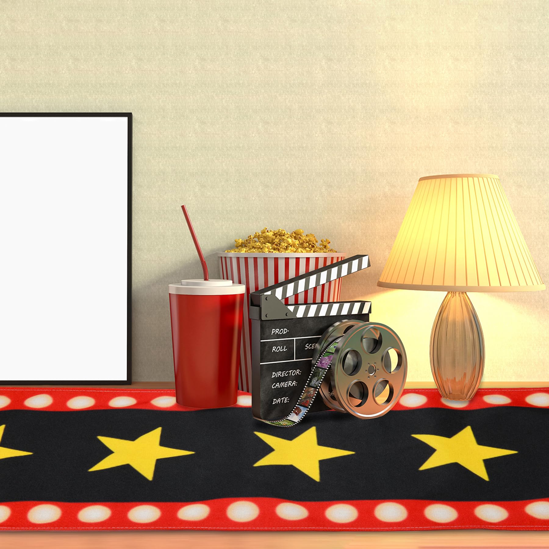 MOVIE THEME DISIGN:Novel movie night theme design, with golden stars printed on the red pattern and light bulb effects on both sides, sparkling and full of movie night party atmosphere.
