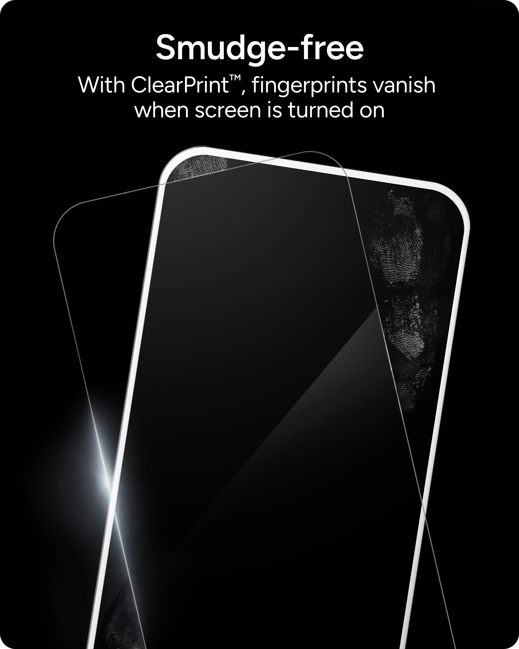 CLEAN, SMUDGE-FREE SCREEN - The ClearPrint surface treatment on the tempered glass disperses the oil from your fingertips and hides the visibility of fingerprints on your screen so that your phone's touch sensitivity or screen performance is intact
