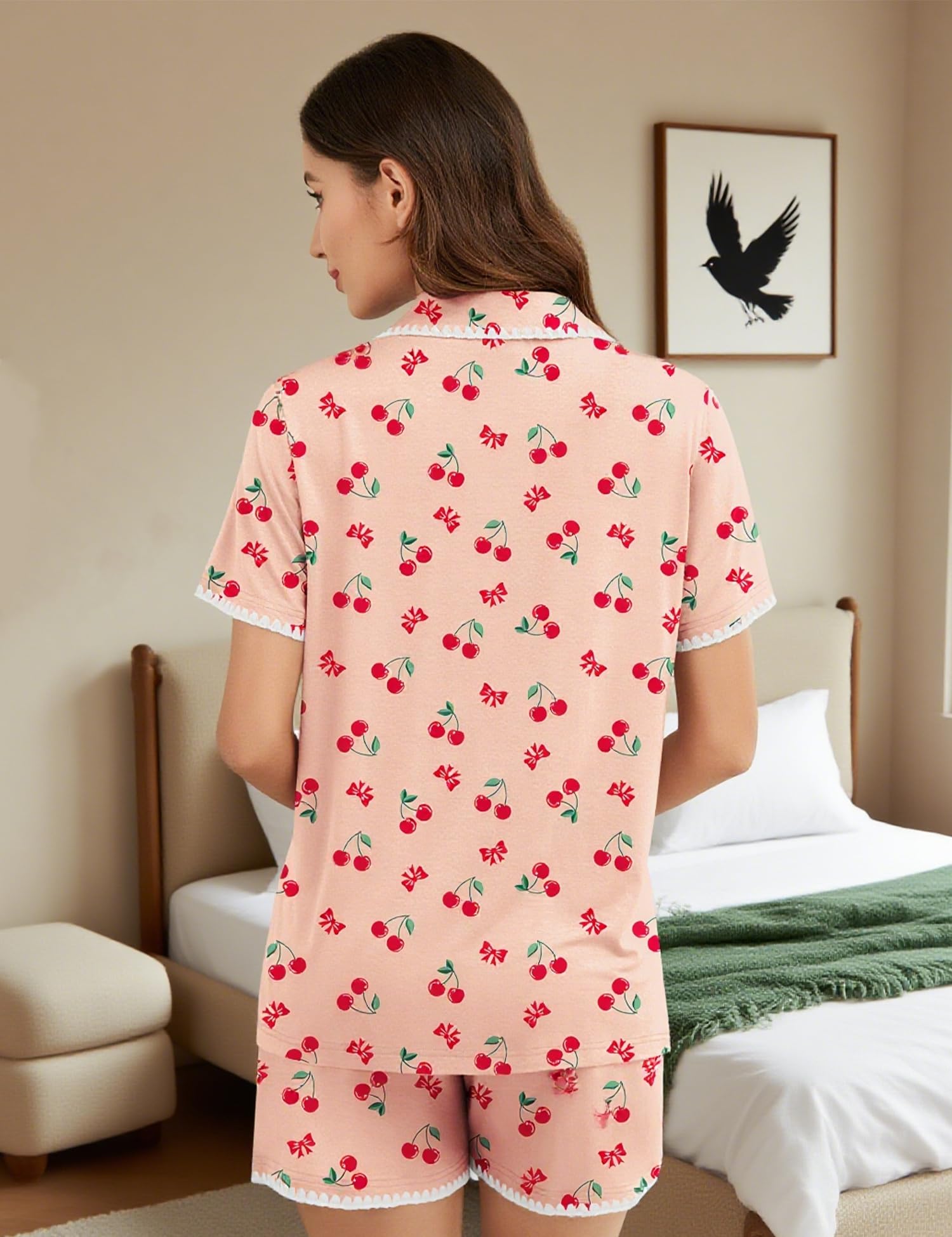 Occasions: Women's short-sleeved pajamas set, suitable for daily wear, easy to match, light and easy to carry; suitable for participating in pajama parties, girls' day, bridal pajamas, wedding parties, indoor, masquerade, travel and other daily activities