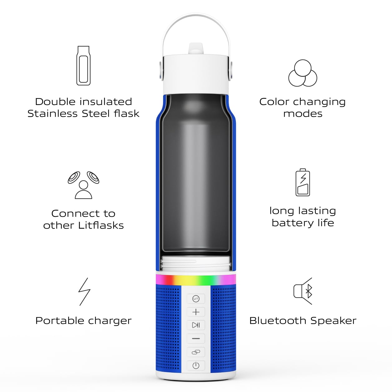 All-in-One Functionality: The LitFlask combines a 20oz insulated stainless steel water bottle, a high-quality Bluetooth speaker, and a 5000 mAh portable charger, providing ultimate convenience.