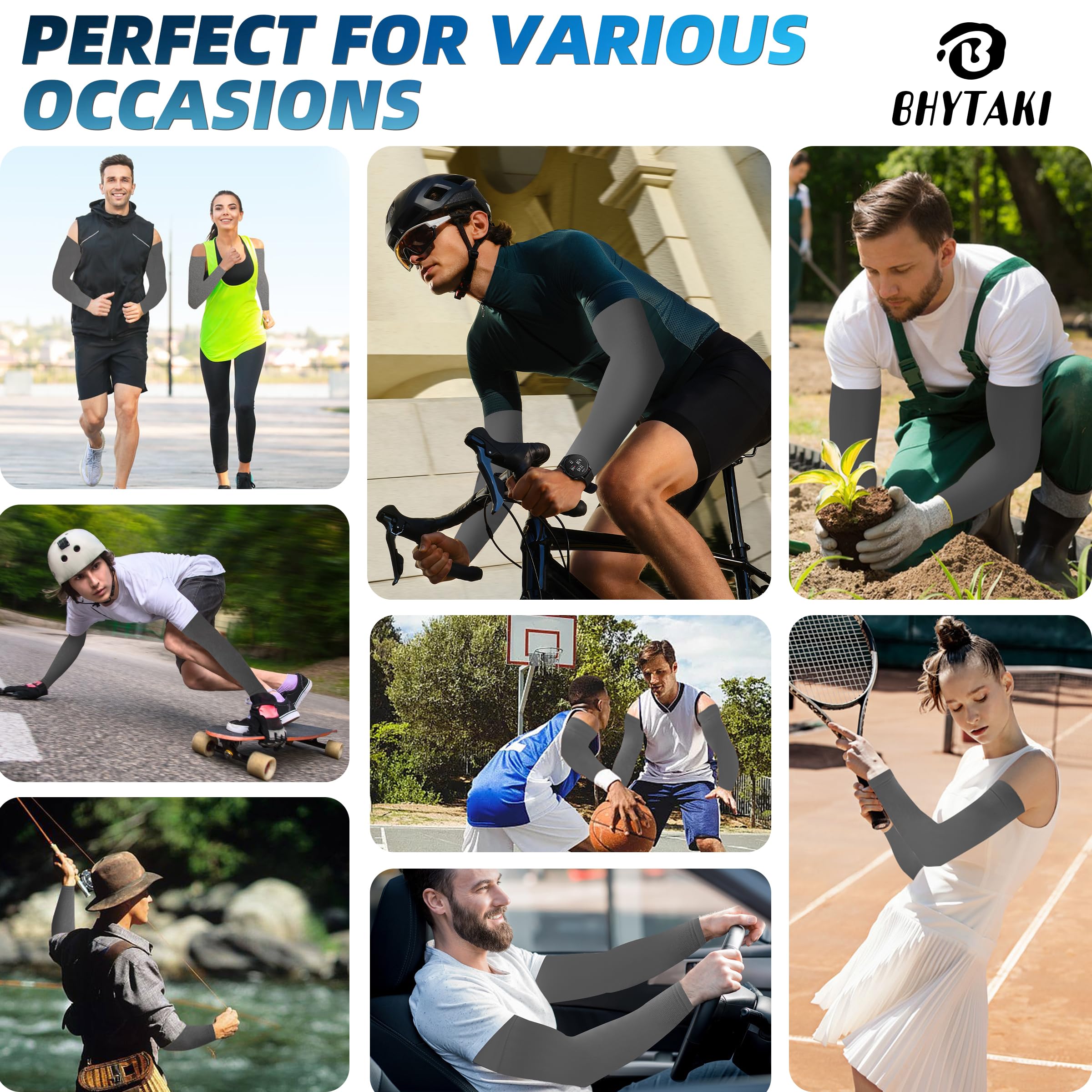 【Arm Sleeves UPF50+ Protection Design】Our arm sleeves set contains 4 pairs of Dark Gray. Our UPF 50+ sun sleeves for men women are made of high-quality soft fabric with added anti-ultraviolet ingredients , can really block up to 98% of harmful UVA and UVB rays, can block harmful sunlight when playing golf, shooting, running, cycling, gardening, working, etc., and prevent skin from sunburn and aging.