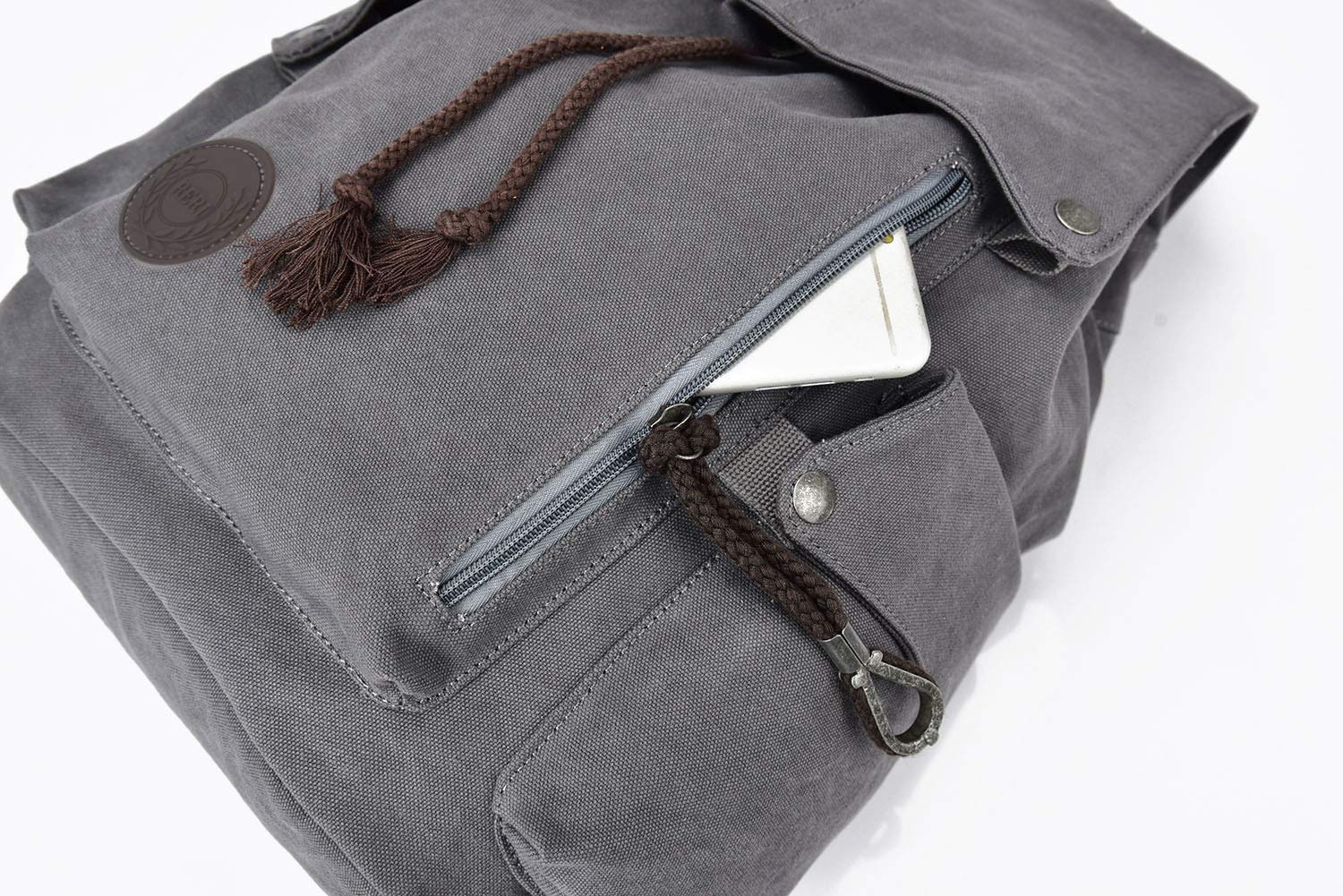 MATERIAL: This canvas backpack is made of 100% durable canvas, which is rugged and has durable performance. Besides, the lhigh quality zippers was used in this bag to last for a long term use.