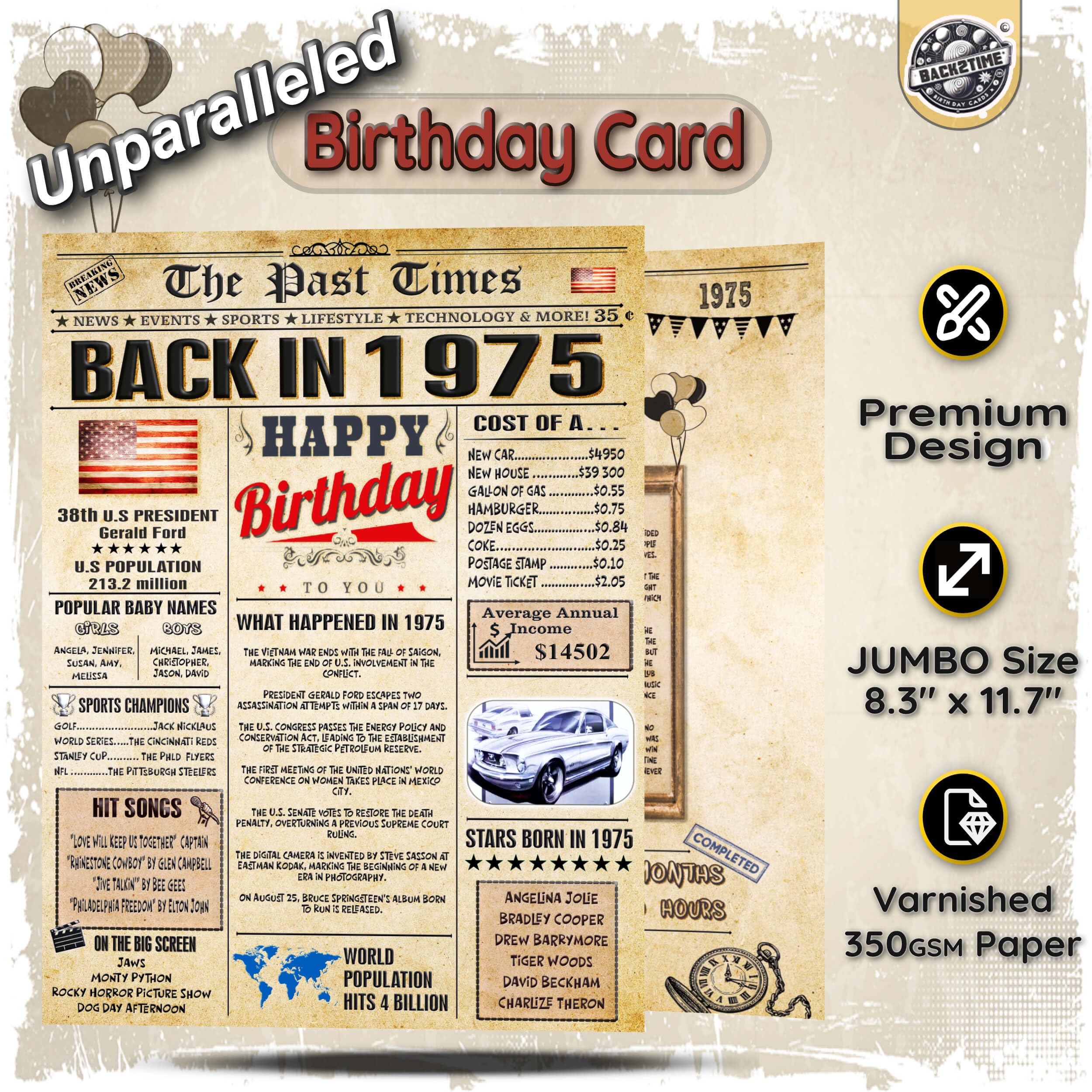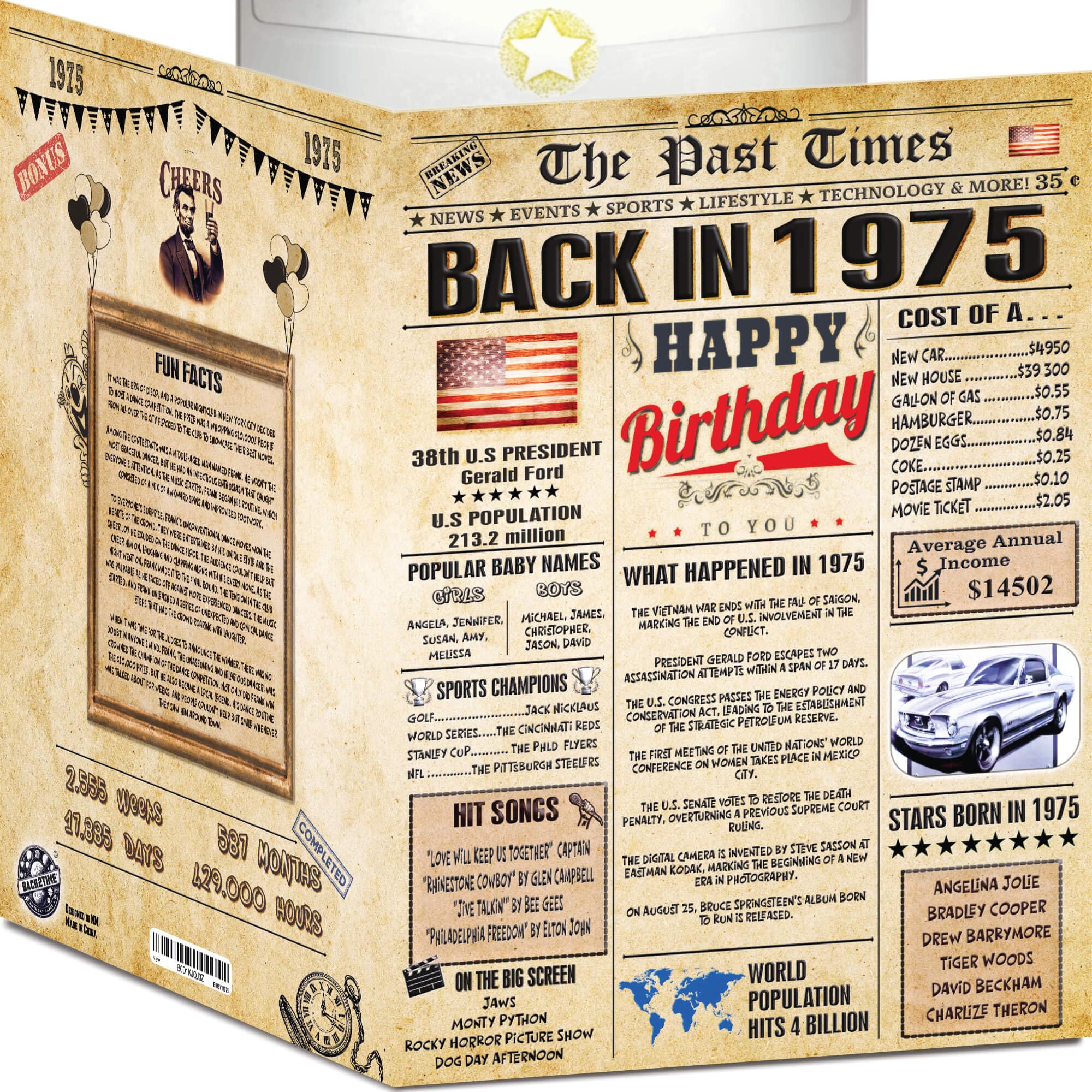 π FUNNY BIRTHDAY CARD + EXCLUSIVE ENVELOPE π Enjoy a beautifully printed Back in card that's entertaining to read, featuring a special bonus on the back with intriguing stories or lesser-known facts from that year. The interior offers space for personalized messages, designed with an aged appearance and elegant decorations to enhance the vintage feel. The included envelope boasts a unique design ideal for mom and adult born in 1975. Birthday Cards for Women, Birthday Cards for Men.