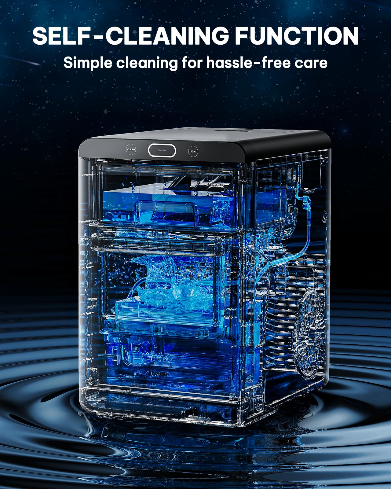 Smart Self-Cleaning Ice Maker System: The countertop ice maker simplifies maintenance with one-touch auto cleaning cycle. Removable components (water tank, ice basket) are dishwasher-safe, crucial for nugget ice fresh