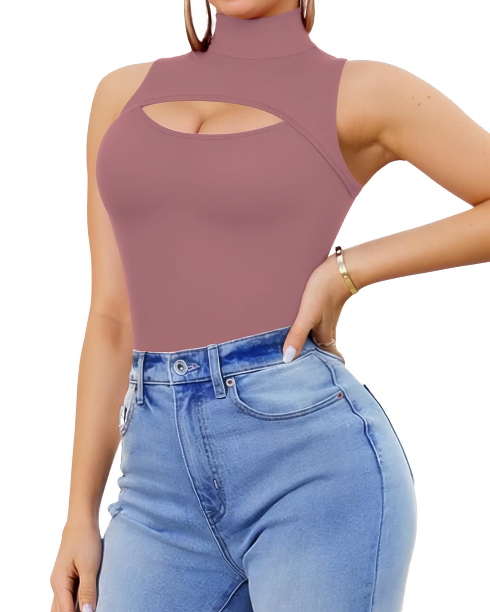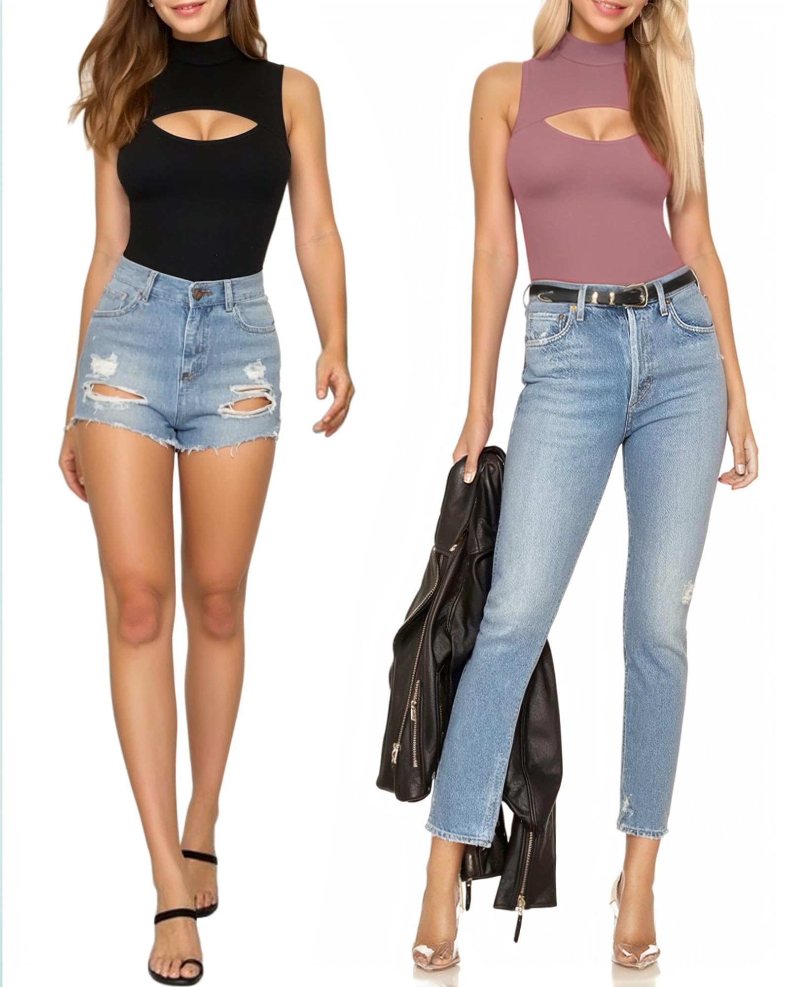 Styling: Sleeveless body suits boast a stretch-fitted style with a mock neck and cut out detailing, offering a slim fit and exuding a casual yet graceful fashion vibe, easily paired with pants, shorts, jeans, skirt, and more