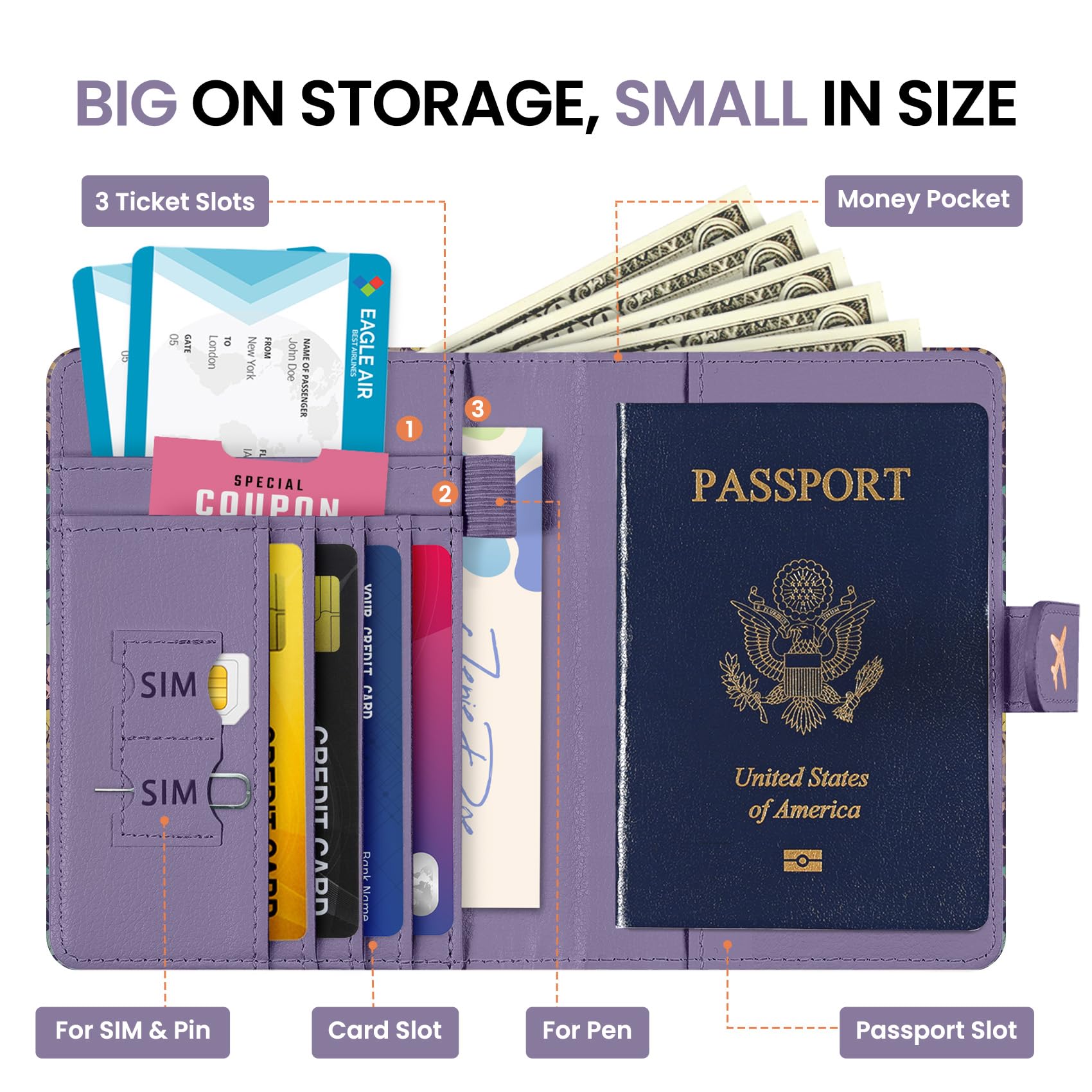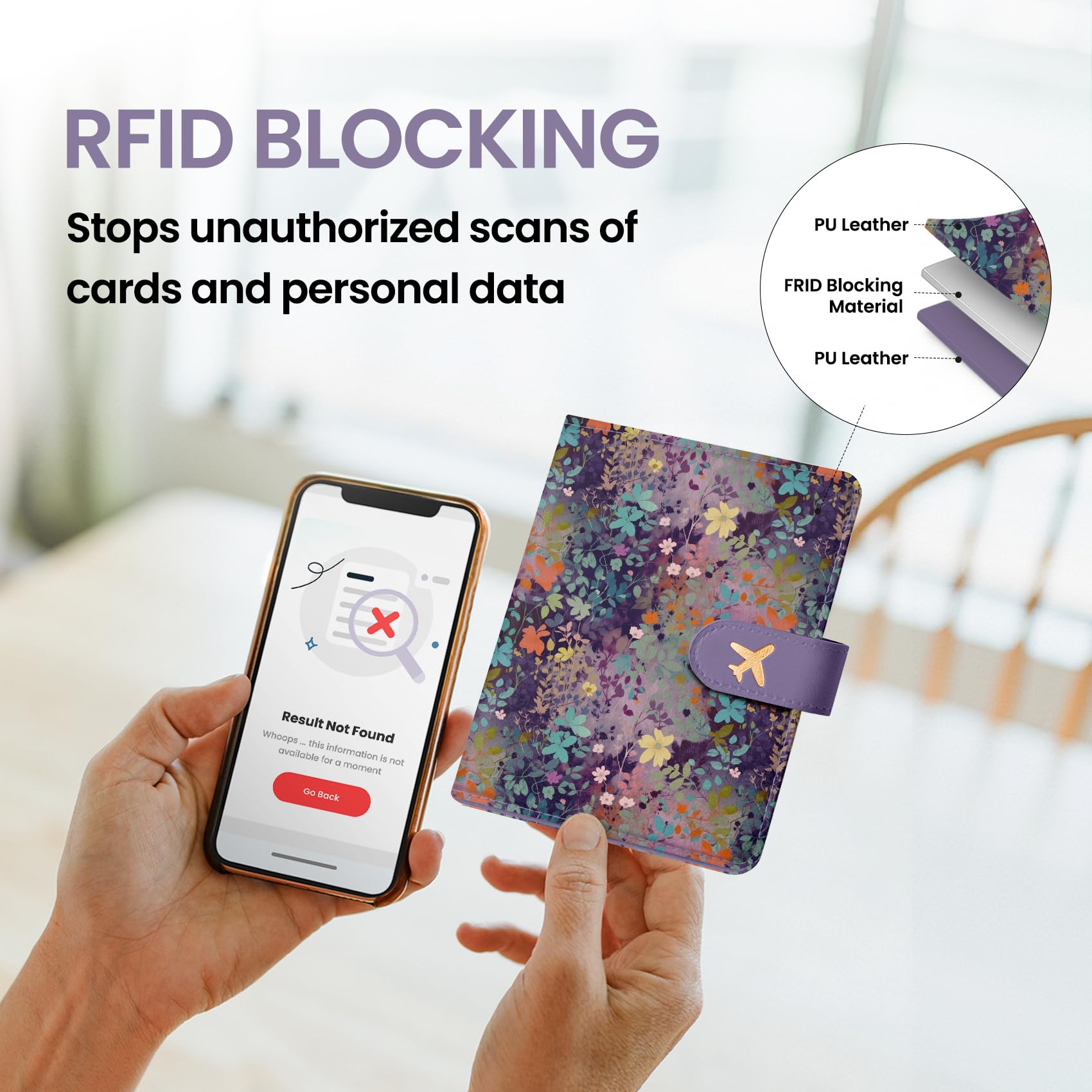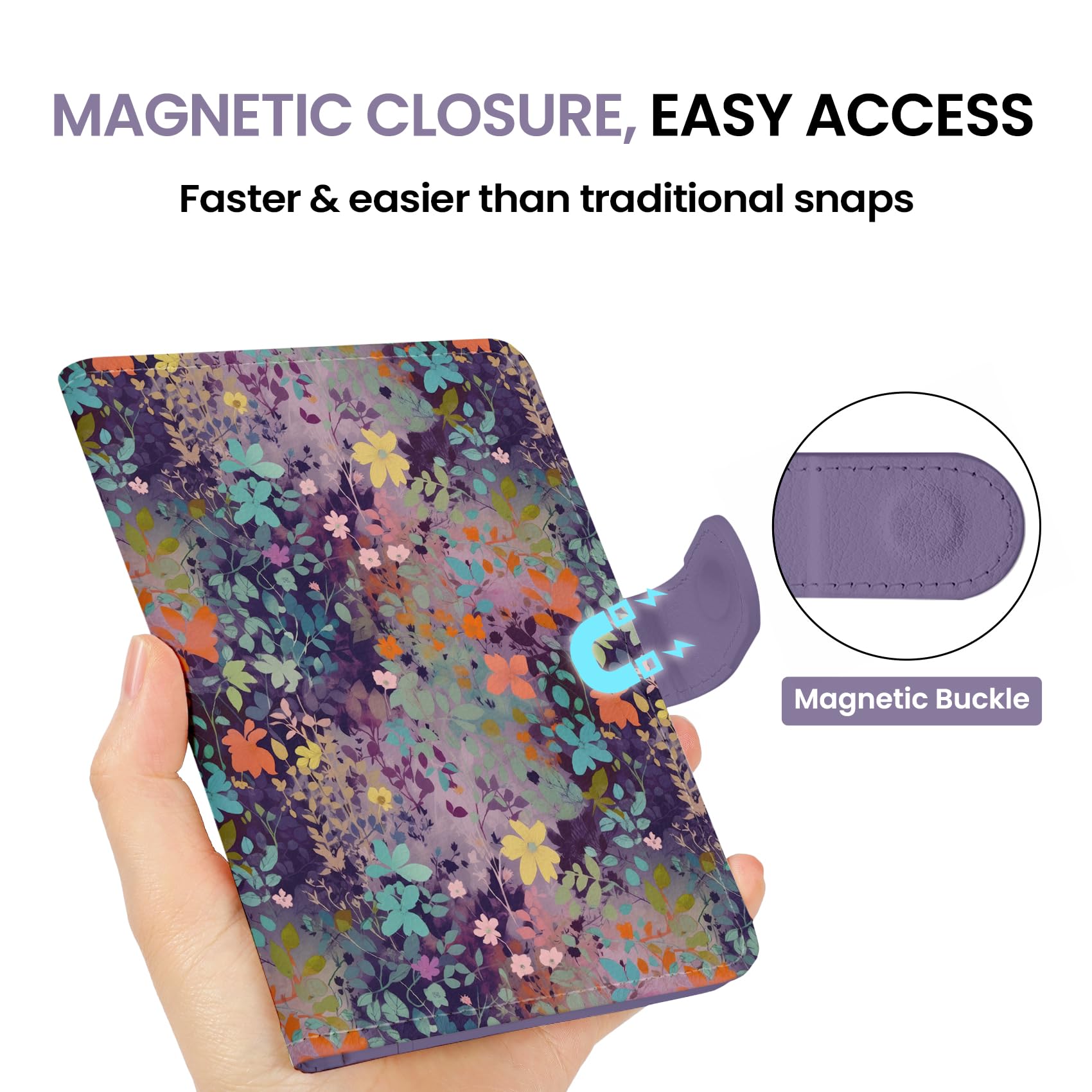 Instant Access & Magnetic Closure: Access your travel essentials in a snap. Our passport holder features a smooth magnetic closure for quick entry and secure storage - no more fumbling with zippers or snaps. Designed for effortless travel.