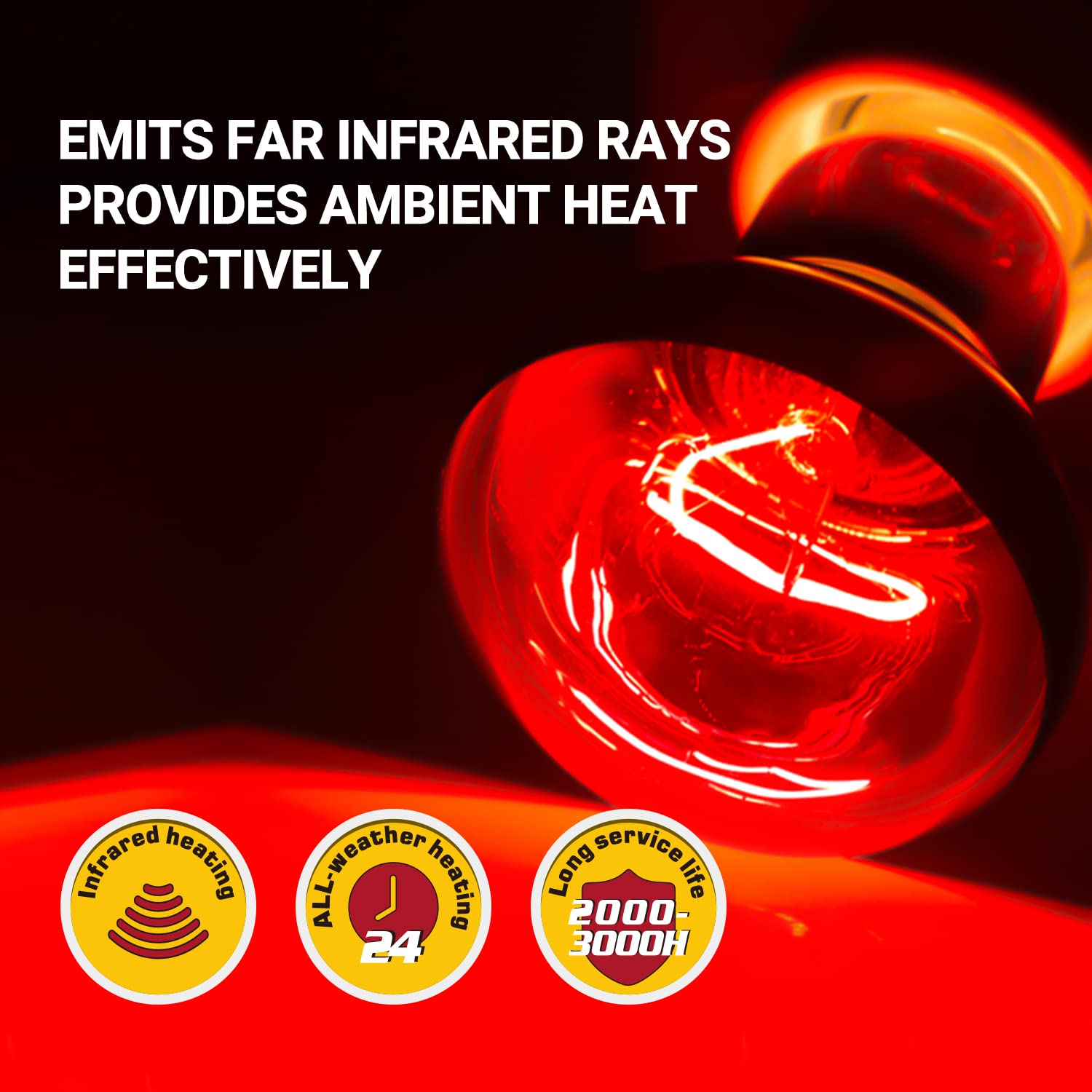 【Long Service Life】Adopt updated vacuum aluminizing process technology, the efficiency of the heat lamp bulb increase and the heat bulbs can be used over 2000 hours, max 3000 hours.