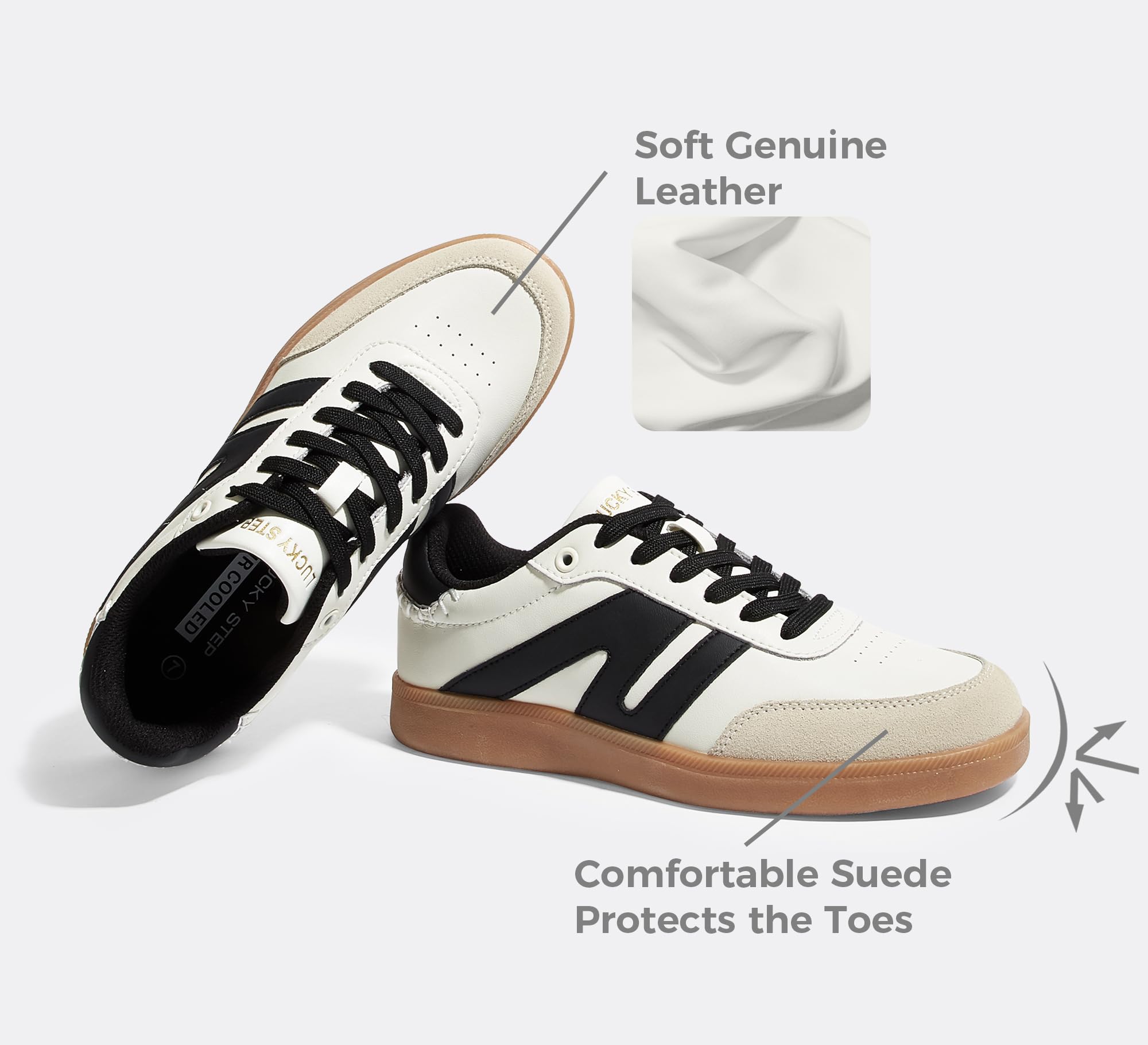 【HIGH-QUALITY】: The women's retro shoes' upper combines premium suede and genuine leather, providing a soft and comfortable feel when worn.