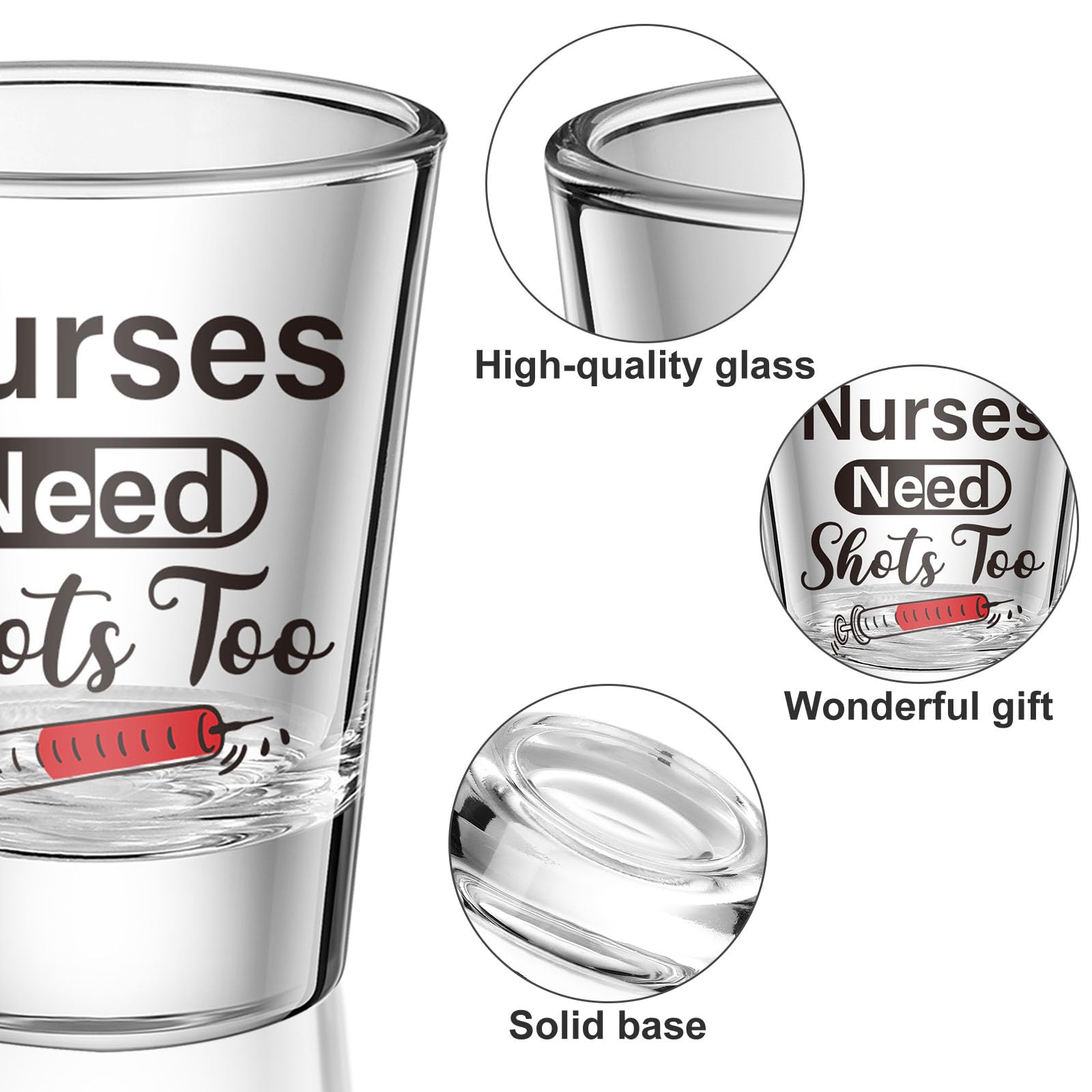 Size Details: nurse need shots too glasses measure about 6 cm/ 2.36 inch high, and 5 cm/ 1.97 inch in top diameter, proper size for you to hold different drinks, also nice gifts for nurse, wife, aunt, friend, or sister