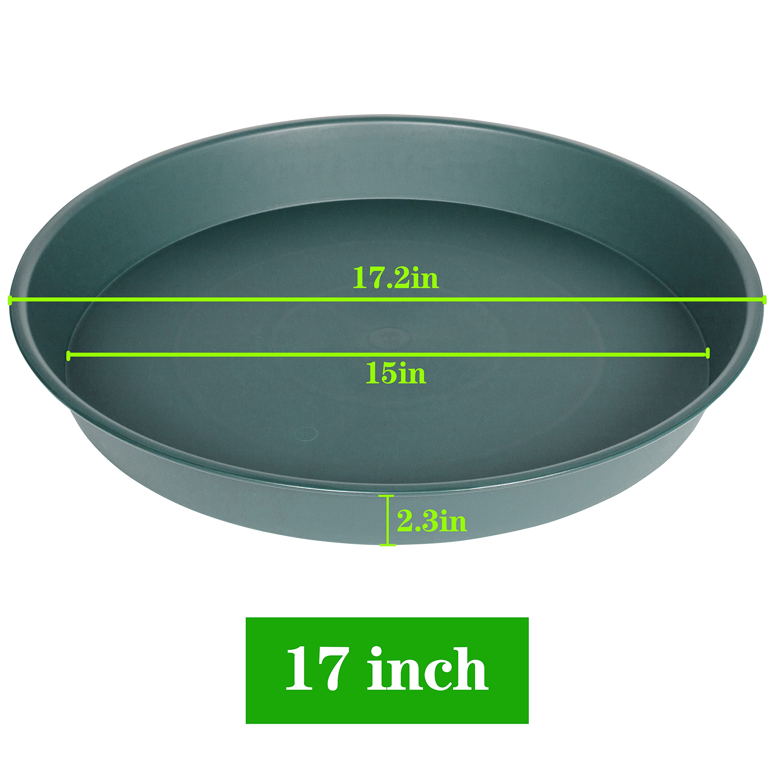 【PlANT SAUCER VLUE】Bleuhome plant saucer 17 inch, large heavy duty plant saucers, The tray size of each Flower pot trays is 17.3" at the top and 15" from bottom and it is 2.3" deep, suitable for planters with bottom diameter less than 14.8 inches.Plant Trays for Planter 14"/15"/16"/17".